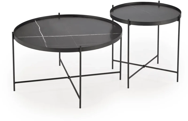 Zestaw 2 stolików kawowych Julieta okrągłe do salonu czarny marmur