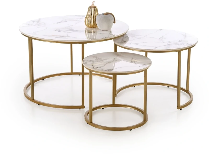 Zestaw 3 stolików kawowych Gilda okrągłe w stylu glamour biały marmur/złoty