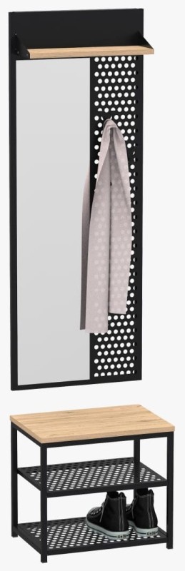 Zestaw do przedpokoju metalowy Loft 1L czarny/dąb wotan