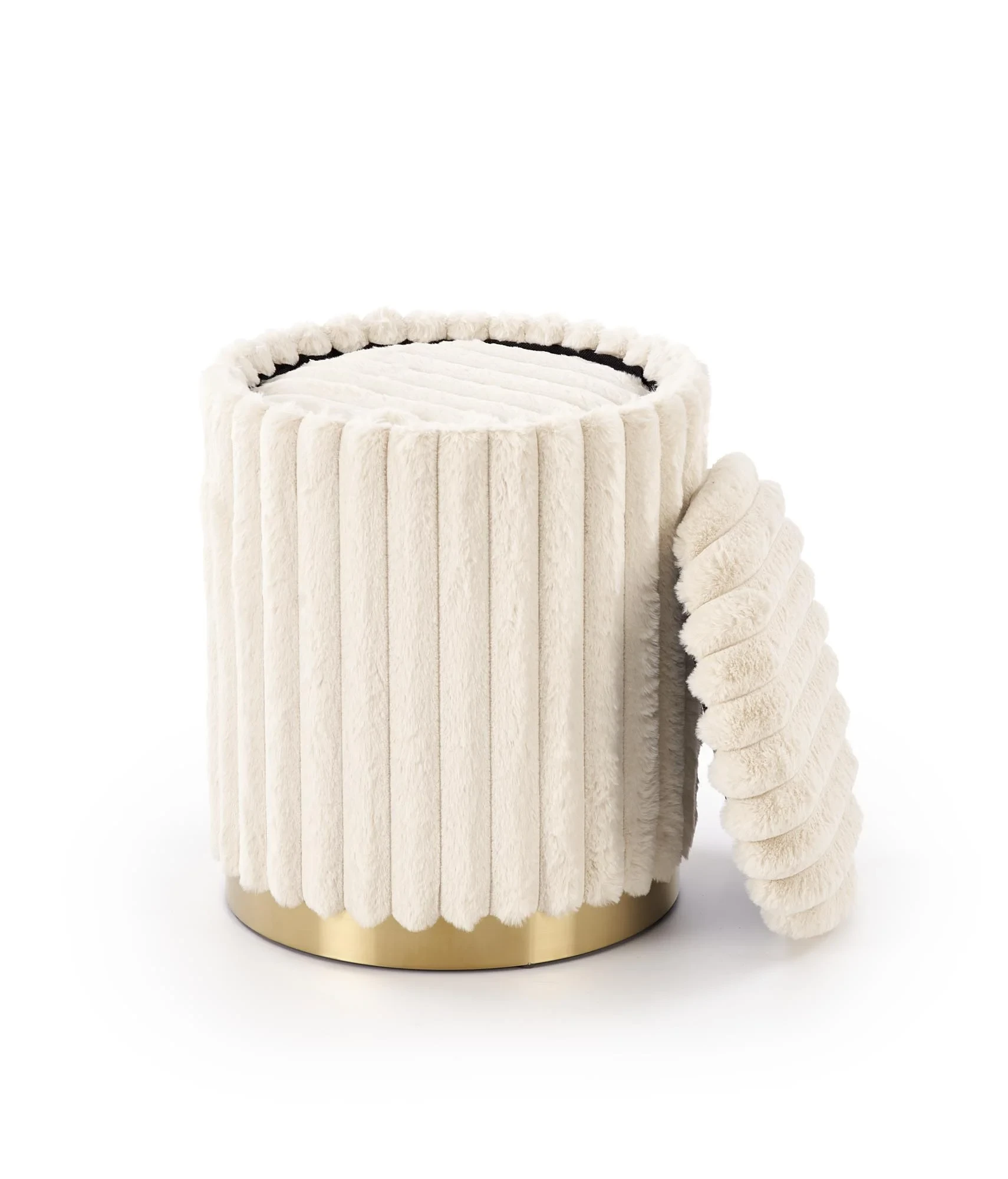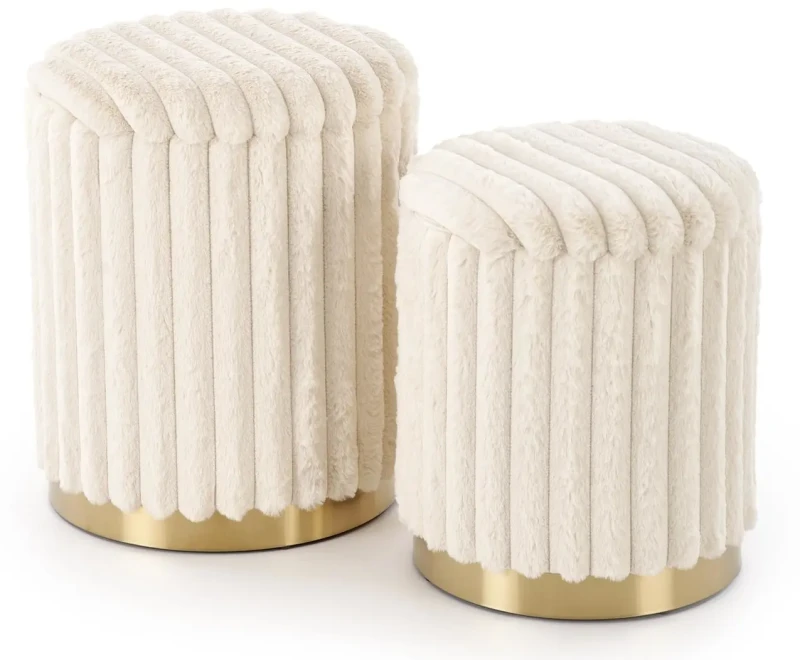 Zestaw dwóch puf FIDO z funkcją schowka kremowy na złotej podstawie
