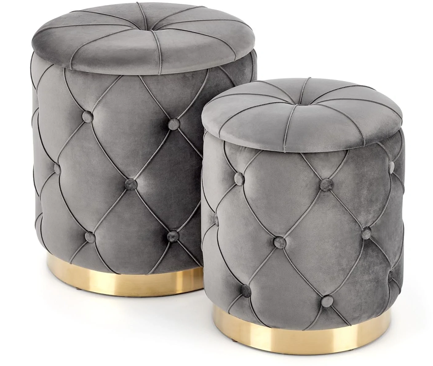 Zestaw dwóch puf Polly z funkcją schowka popiel na złotej podstawie