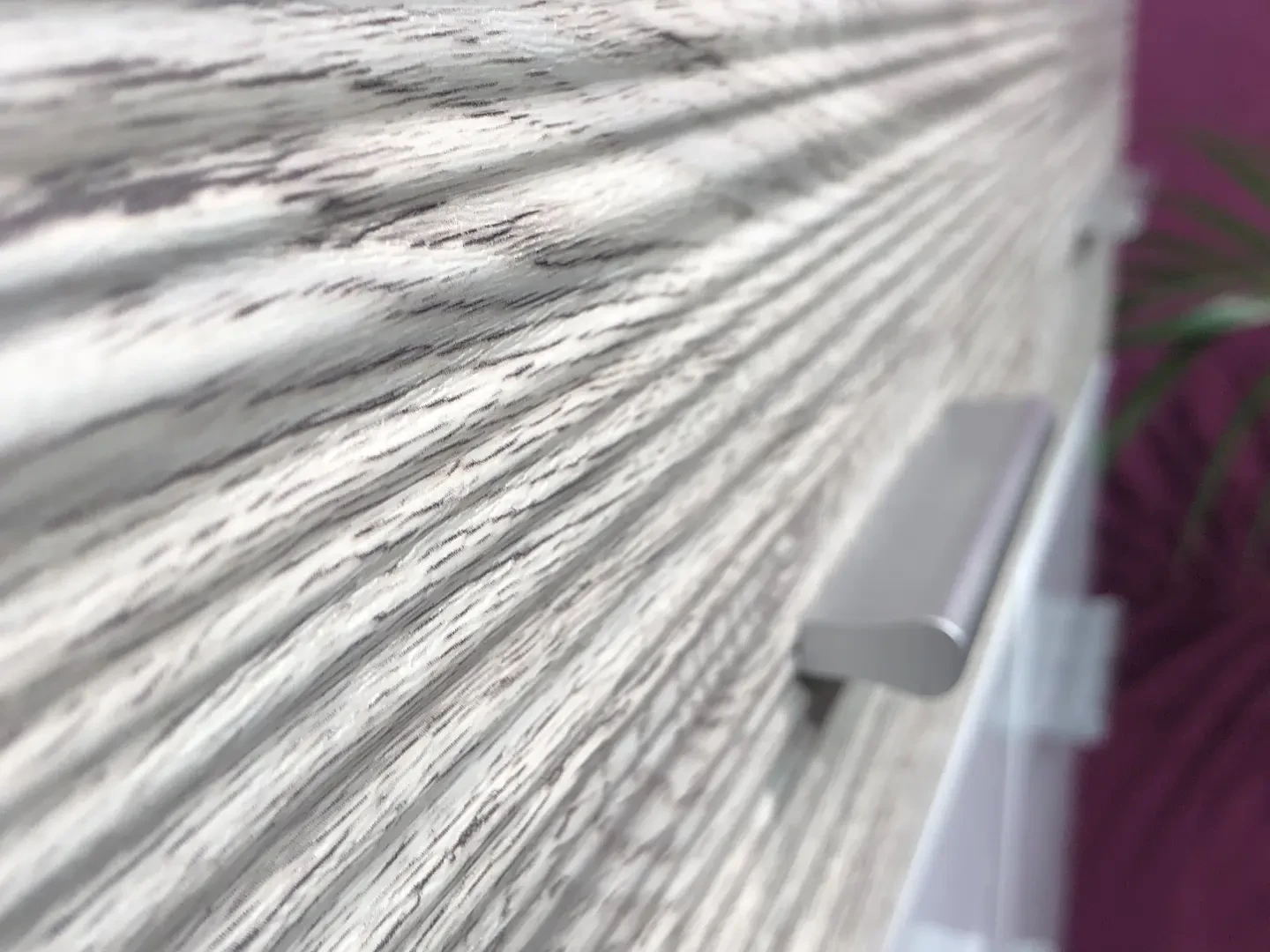 - Front: Biały połysk PVC i dąb Wellington PVC (ryflowany)