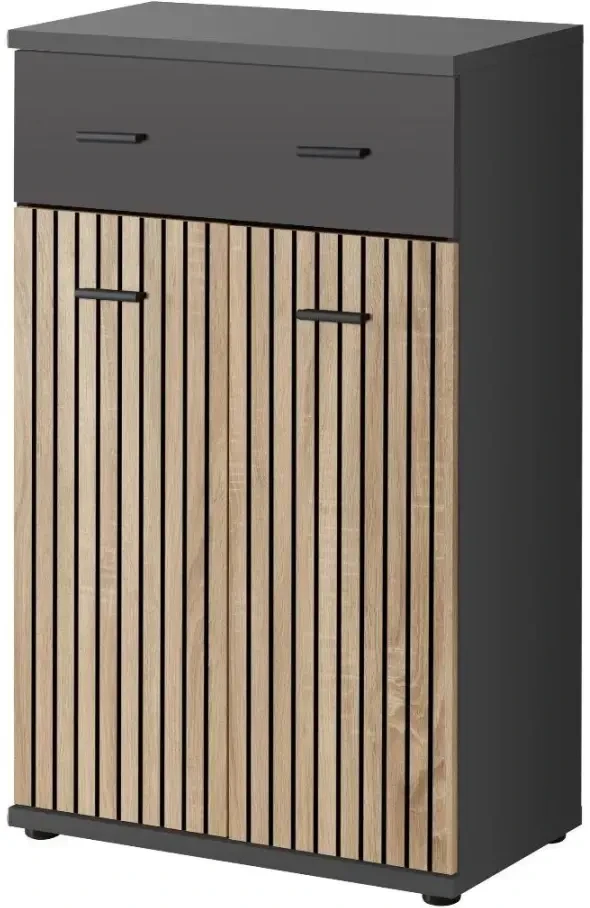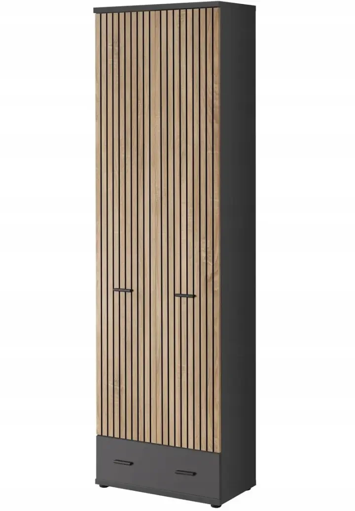 Zestaw mebli do przedpokoju Marco III to idealne rozwiązanie dla osób ceniących funkcjonalność, nowoczesny design oraz praktyczne podejście do organizacji przestrzeni. Składający się z pięciu elementów zestaw nie tylko doskonale wypełnia przestrzeń przedpokoju, ale także umożliwia utrzymanie porządku, dzięki wielu opcjom przechowywania. Zestaw charakteryzuje się eleganckim połączeniem antracytowej barwy z ciepłym odcieniem dębu artisan, co nadaje wnętrzu wyjątkowego klimatu. Nowoczesne wykończenie w połączeniu z czarnymi aplikacjami wprowadza do wnętrza odrobinę stylu i elegancji.