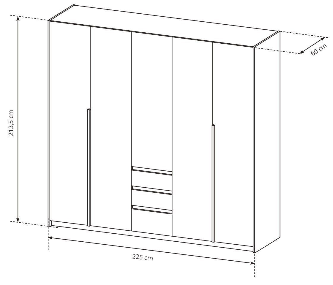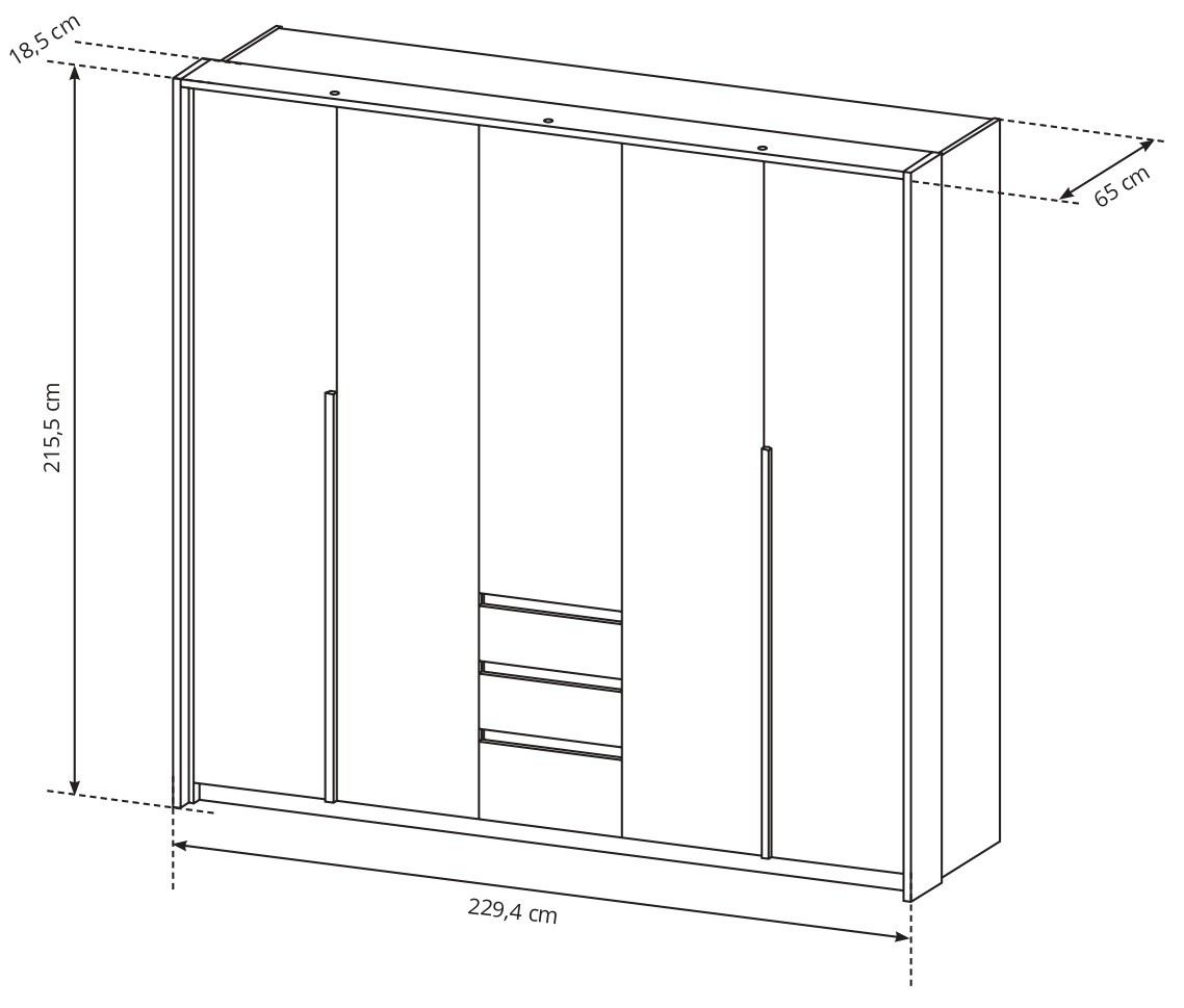- Wymiary szafy z listwą LED: 229,4 x 215,5 x 65 cm