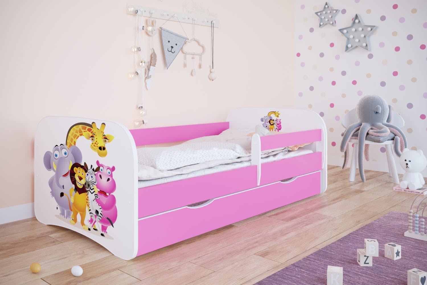 - Łóżko posiada przesuwną barierkę 100 cm, opcjonalną dwudzielną szufladę na pościel umieszczoną na gumowych kółkach z dodatkowo zabezpieczonymi krawędziami oraz 4 typy materacy do wyboru. Barierka, tak jak i szuflada, mogą zostać zamontowane po obu stronach mebla. Wykorzystanie grubych płyt oraz drewnianego stelażu pozwala na udźwig do 100 kg.