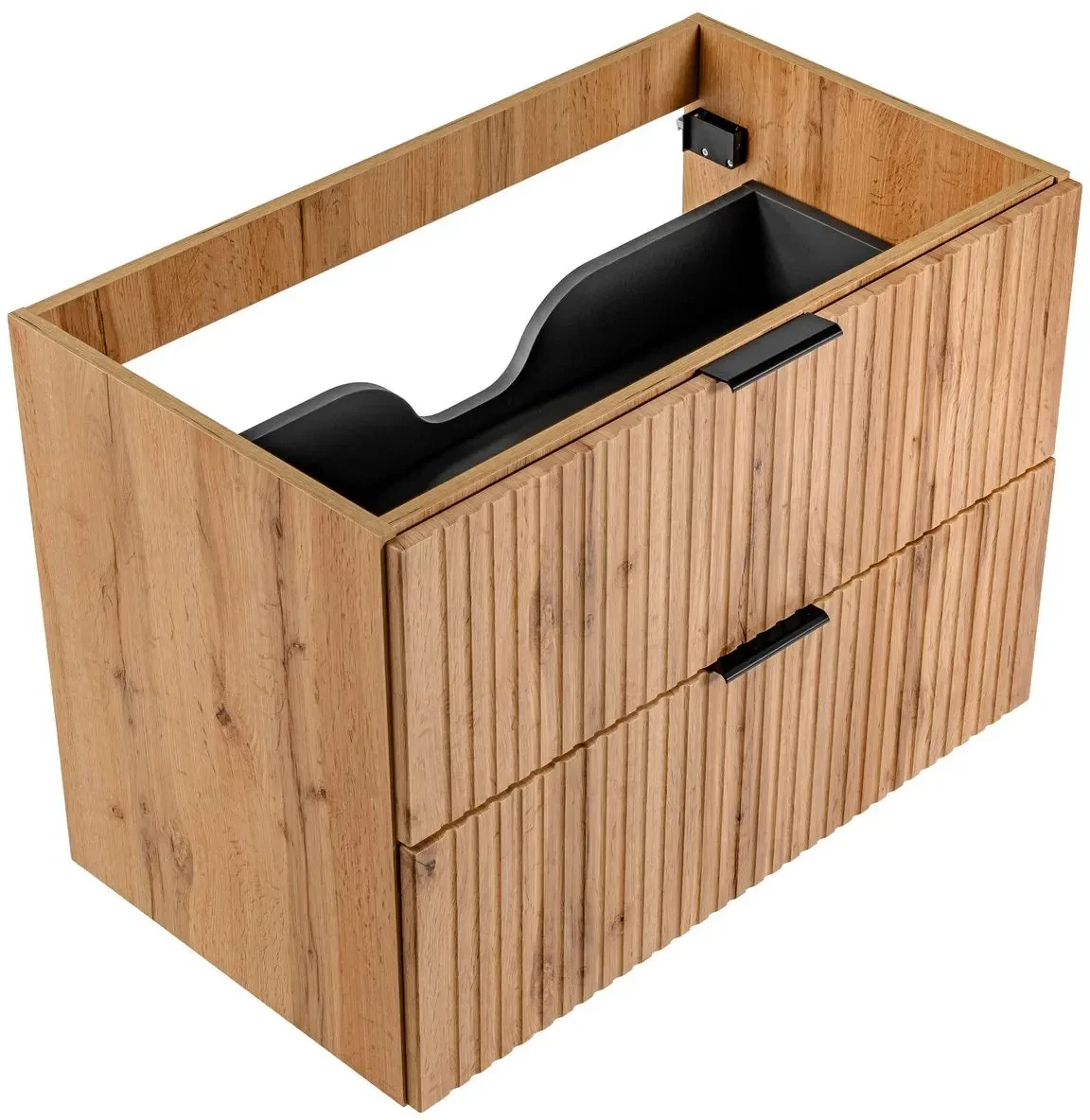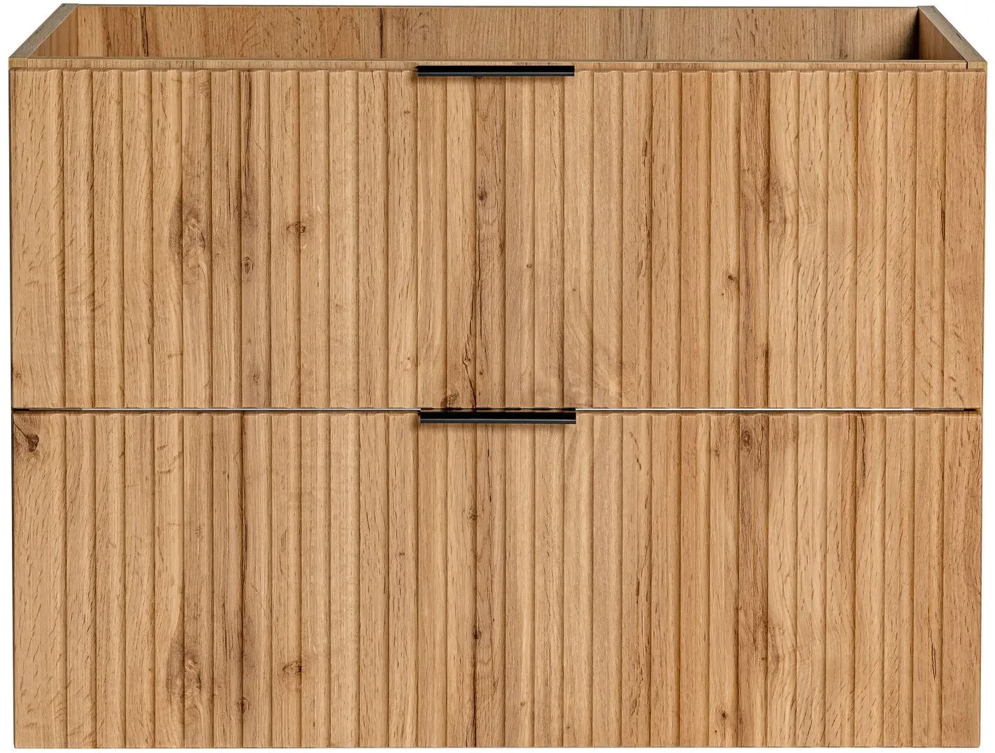 Szafka łazienkowa Adel Oak o szerokości 80 cm, wyposażona w umywalkę nablatową Smile jest doskonałym rozwiązaniem dla nowoczesnych, eleganckich łazienek. Jej dwie pojemne szuflady zapewniają praktyczne miejsce do przechowywania, pomagając zachować porządek i estetykę. Korpus wykonany z laminowanej płyty oraz fronty z płyty MDF są nie tylko trwałe i łatwe w utrzymaniu, ale także dodają szafce eleganckiego wyglądu. Pionowe frezowania na frontach podkreślają nowoczesny design i wnoszą świeżość do wystroju łazienki. Wiszący typ montażu oszczędza miejsce i ułatwia czyszczenie. Dodatkowym atutem są trzy kolory uchwytów dołączone do zestawu (złoty połysk, chrom połysk oraz czarny mat), co pozwala na personalizację wyglądu szafki zgodnie z indywidualnymi preferencjami. Ponadczasowe wzornictwo szafki Adel Oak łączy się z dostępnością kompatybilnych mebli z tej samej kolekcji, umożliwiając stworzenie spójnego i stylowego zestawu, który będzie służyć przez lata.