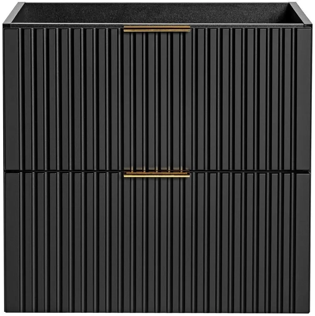 Dwuelementowy zestaw mebli łazienkowych Adel Black to doskonałe rozwiązanie dla nowoczesnych, eleganckich łazienek. W skład zestawu wchodzą dwie szafki pod umywalkę o szerokości 60 cm. Każda szafka wyposażona została w dwie pojemne szuflady, które zapewniają praktyczne miejsce do przechowywania, pomagając zachować porządek i estetykę. Korpus wykonany z laminowanej płyty oraz fronty z płyty MDF są nie tylko trwałe i łatwe w utrzymaniu, ale także dodają szafce eleganckiego wyglądu. Pionowe frezowania na frontach podkreślają nowoczesny design i wnoszą świeżość do wystroju łazienki. Wiszący typ montażu oszczędza miejsce i ułatwia czyszczenie. Dodatkowym atutem są trzy kolory uchwytów dołączone do zestawu (złoty połysk, chrom połysk oraz czarny mat), co pozwala na personalizację wyglądu szafki zgodnie z indywidualnymi preferencjami. Ponadczasowe wzornictwo szafki Adel Black łączy się z dostępnością kompatybilnych mebli z tej samej kolekcji, umożliwiając stworzenie spójnego i stylowego zestawu, który będzie służyć przez lata.