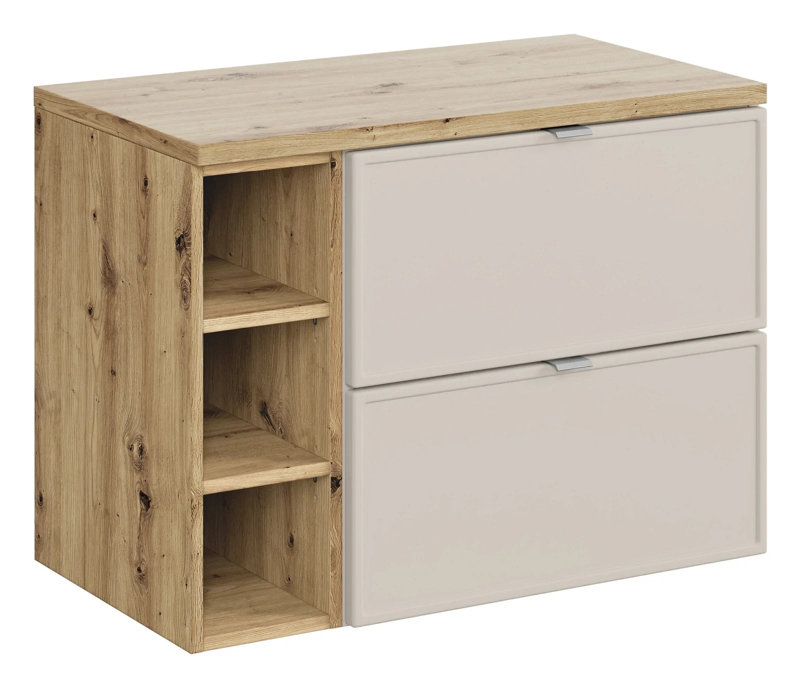 Zestaw mebli łazienkowych Bella Cashmere szafka z regałem i blatem 80 cm dąb artisan