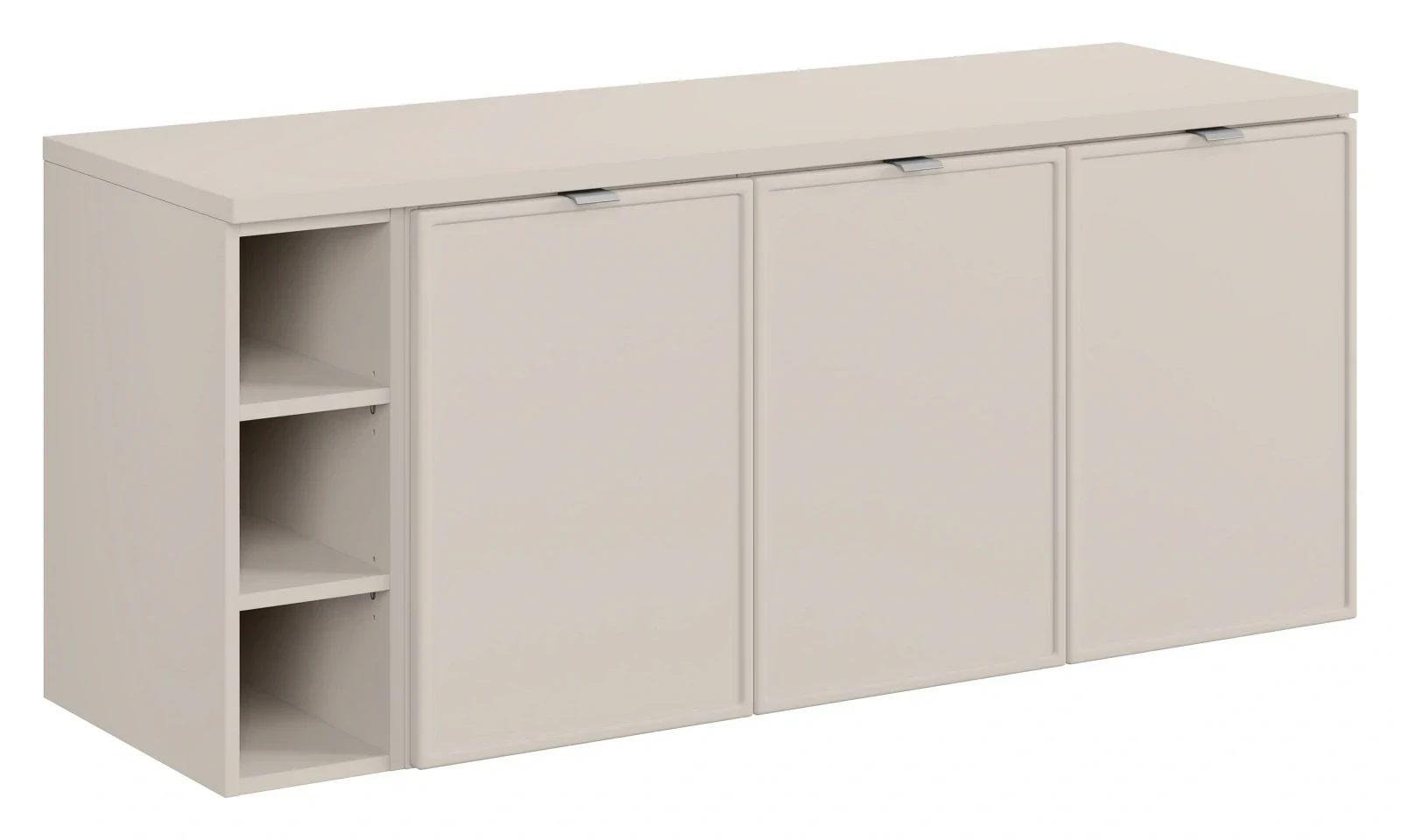 Zestaw mebli łazienkowych Bella Cashmere trzydrzwiowa szafka z regałem i blatem 140 cm