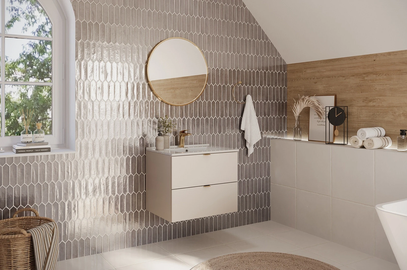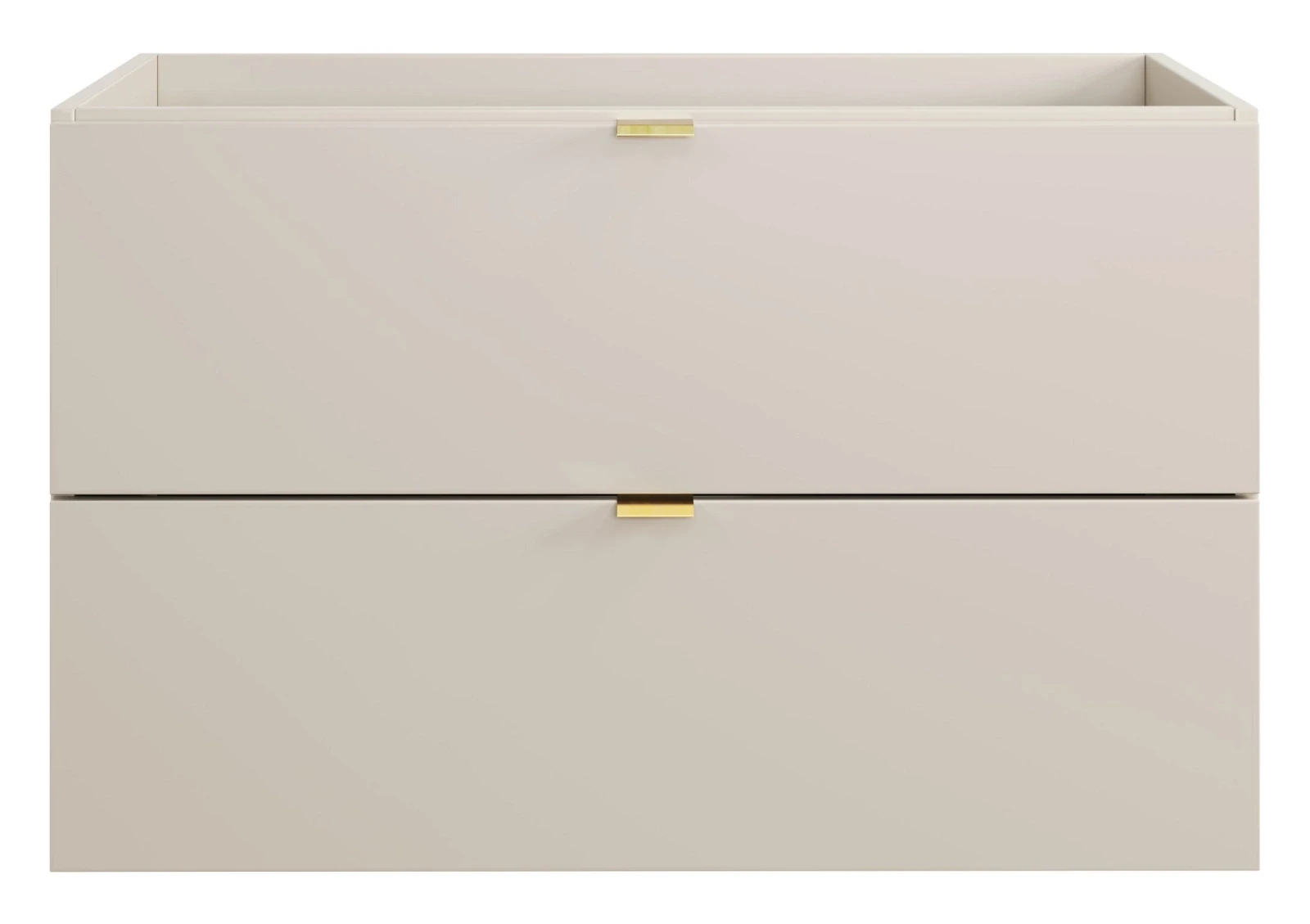 Zestaw mebli łazienkowych z kolekcji Dalia Cashmere to idealne rozwiązanie dla osób ceniących minimalistyczny styl i funkcjonalność. W skład zestawu wchodzi szafka pod umywalkę o szerokości 80 cm oraz umywalka meblowa. Gładkie fronty szafki w delikatnym odcieniu kaszmiru, pozbawione zbędnych zdobień, wprowadzają do wnętrza elegancję i ciepło, jednocześnie doskonale komponując się z nowoczesnymi aranżacjami łazienkowymi. W zestawie znajdują się trzy kolory uchwytów: złoty połysk, chrom połysk oraz czarny mat, co pozwala na łatwe dopasowanie mebla do indywidualnych preferencji i stylistyki wnętrza.