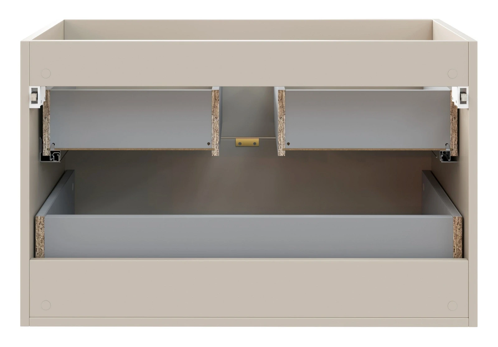 Dwie pojemne szuflady zapewniają wystarczającą przestrzeń na przechowywanie akcesoriów łazienkowych, umożliwiając utrzymanie porządku w łazience. Szafka charakteryzuje się ergonomiczną wysokością 50 cm, co sprawia, że wnętrze wydaje się bardziej przestronne i lekkie w porównaniu do standardowych modeli. System cichego domykania frontów zwiększa komfort użytkowania, a precyzyjne wykonanie i dbałość o detale gwarantują estetyczny wygląd oraz trwałość mebla.