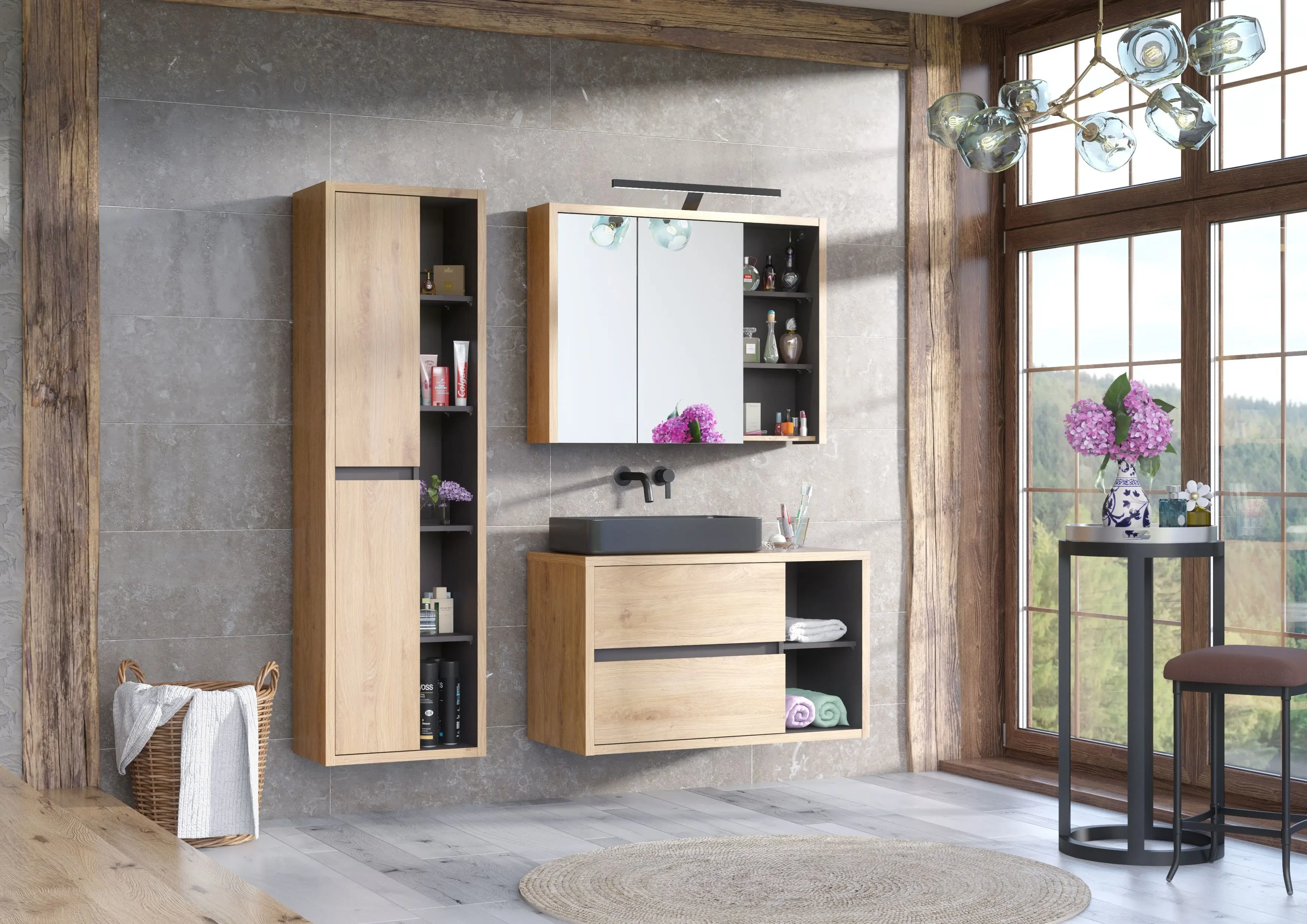 Zestaw mebli łazienkowych DEVON dąb shetland/grafit szafka łazienkowa 100 cmz umywalką SLIM