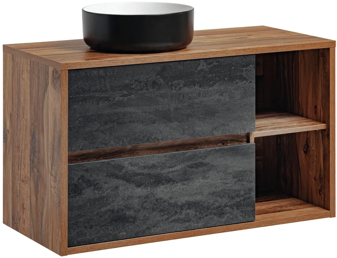 - wyjątkowy design - połączenie betonowych frontów z dębem Hunton dodaje szafce niepowtarzalnego, nowoczesnego charakteru, jednocześnie wprowadzając ciepło naturalnego drewna do wnętrza