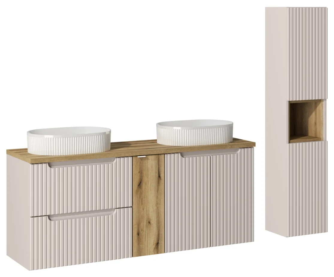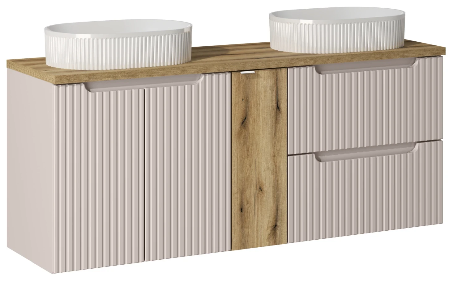 Zestaw mebli łazienkowych NOVA CASHMERE z dwoma umywalkami BEYOND i blatem dąb 140 cm - 8 elementów
