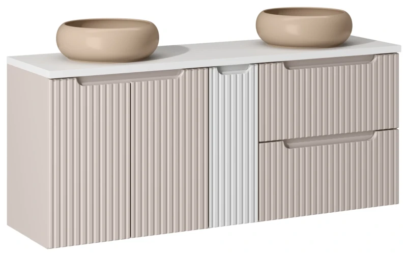 Zestaw mebli łazienkowych NOVA CASHMERE z dwoma umywalkami WIKI i białym blatem 140 cm - 6 elementów