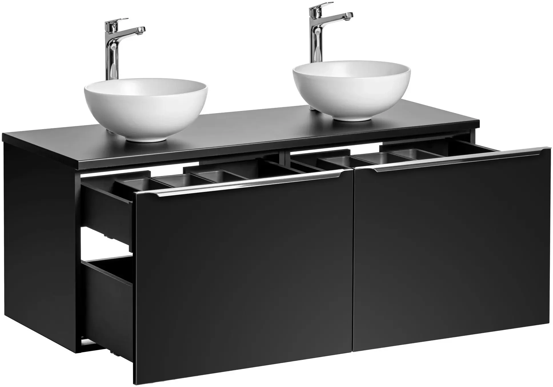 Zestaw mebli łazienkowych SANTA FE BLACK z dwoma umywalkami DOMI i blatem 120 cm - 5 elementów