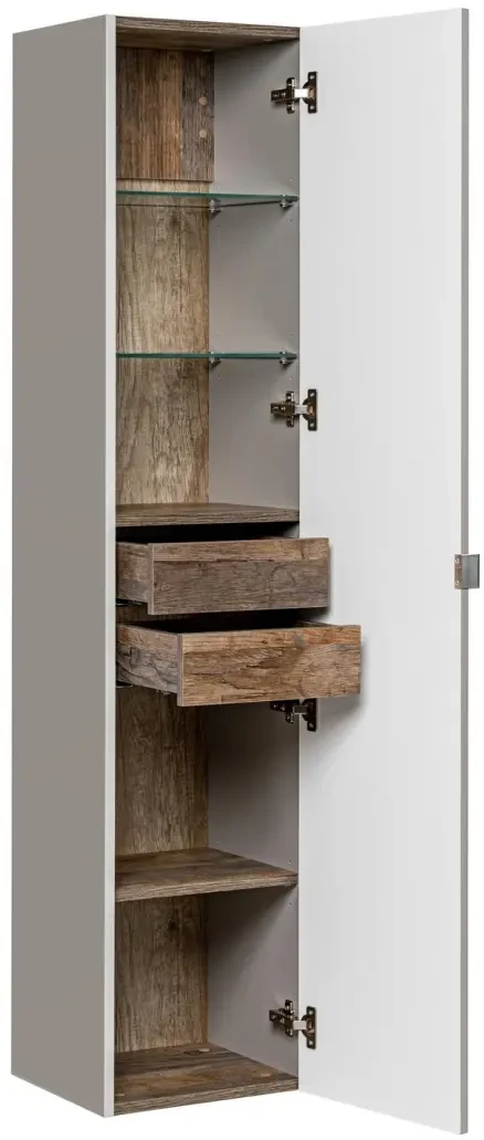 wysoki słupek i regał dolny - oferują kolejne miejsce do przechowywania na przybory łazienkowe, kosmetyki, czy ręczniki