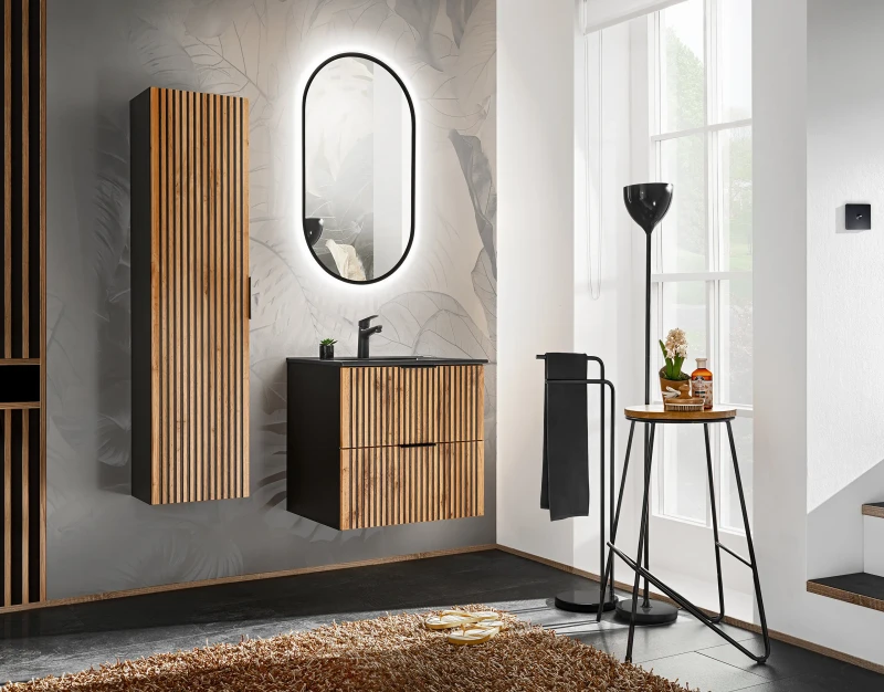 Zestaw mebli łazienkowych XILO A1 to nowoczesne i eleganckie rozwiązanie do Twojej łazienki. Ten pięcioelementowy zestaw zawiera szafkę pod umywalkę o szerokości 60 cm, co zapewnia dużo miejsca do przechowywania i wygodę użytkowania. Wisząca konstrukcja sprawia, że zestaw jest nie tylko funkcjonalny, ale również dodaje przestrzeni i lekkości wnętrzu. Styl nowoczesny podkreślony jest przez ryflowane fronty, które są nie tylko praktyczne, ale również stanowią piękny element dekoracyjny. Ten zestaw łączy w sobie wysoką jakość wykonania z pięknym wzornictwem, idealnie pasując do nowoczesnych łazienek, które cenią sobie zarówno estetykę, jak i funkcjonalność.