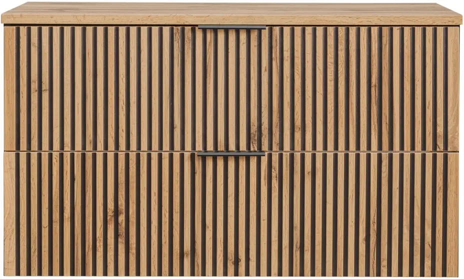Szafka łazienkowa XILO to nowoczesny i elegancki mebel o szerokości 100 cm, który doskonale wpasuje się w każdą łazienkę. Wisząca konstrukcja ułatwia utrzymanie czystości pod meblem, co jest praktycznym rozwiązaniem w codziennym użytkowaniu. Szafka wyposażona w dwie pojemne szuflady oferuje obszerne miejsce do przechowywania różnorodnych przedmiotów łazienkowych. Umywalka nablatowa dodaje szafce praktyczności i stylu. Mebel wykonany jest z wytrzymałej płyty laminowanej oraz MDF, co gwarantuje jego długowieczność. Ryflowane fronty w pionowy wzór nadają unikalnego charakteru, a cichy domyk szuflad zapewnia komfort użytkowania. Możliwość doboru innych mebli z tej samej serii XILO pozwala na stworzenie spójnej i funkcjonalnej aranżacji łazienkowej.