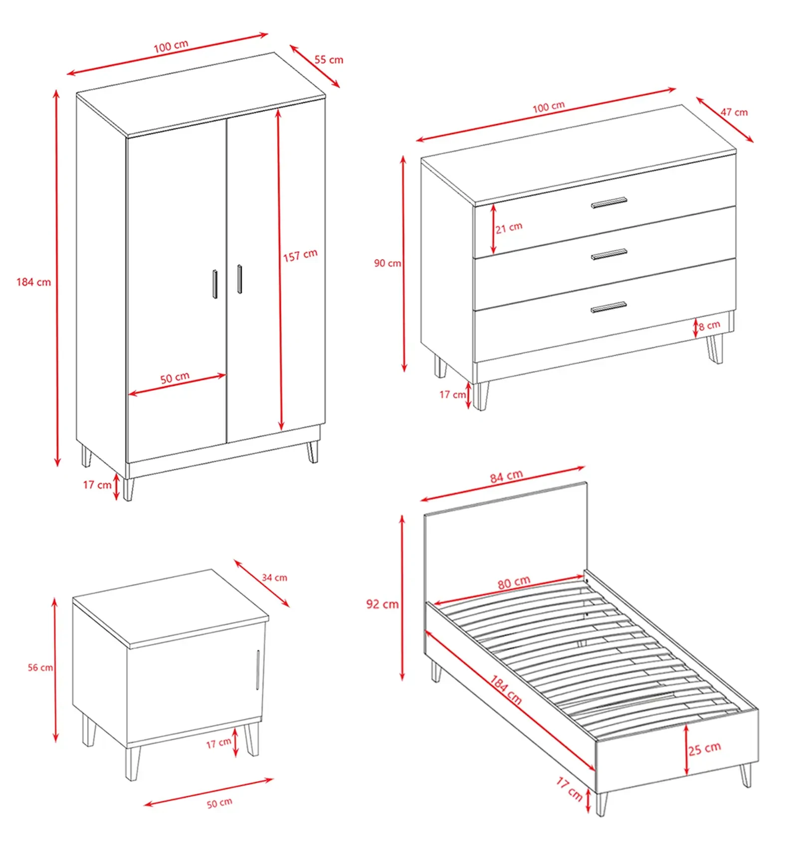 - powierzchnia spania: 80 x 180 cm - Szafka nocna - szer/wys/gł: 50/56/34 cm