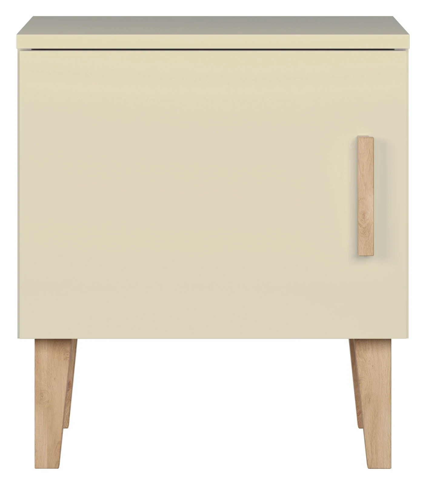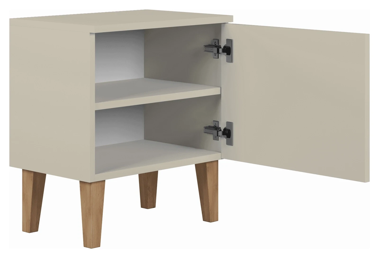 - Szafka nocna posiada cichy domyk montowany na klik. Wewnątrz posiada jedną półkę.