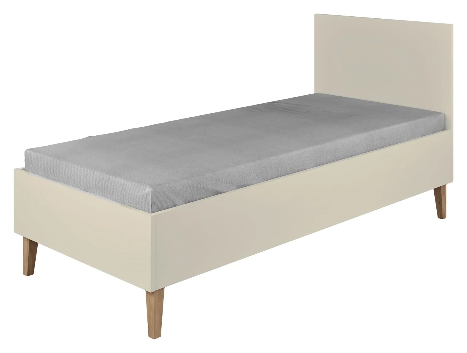 - Łóżko posiada nóżki wykonane z lakierowanego, litego drewna dębowego. Korpus wykonany został z matowej płyty MDF, zaś stelaż z listew sprężynujących, wykonany jest z drewna brzozowego żywicowanego. Maksymalne obciążenie łóżka wynosi 100 kg. Łóżko sprzedawane jest bez materaca. Rozmiar materaca pasującego do łóżka wynosi 80 x 180 cm, a jego maksymalna wysokość może mieć nawet 20 cm.