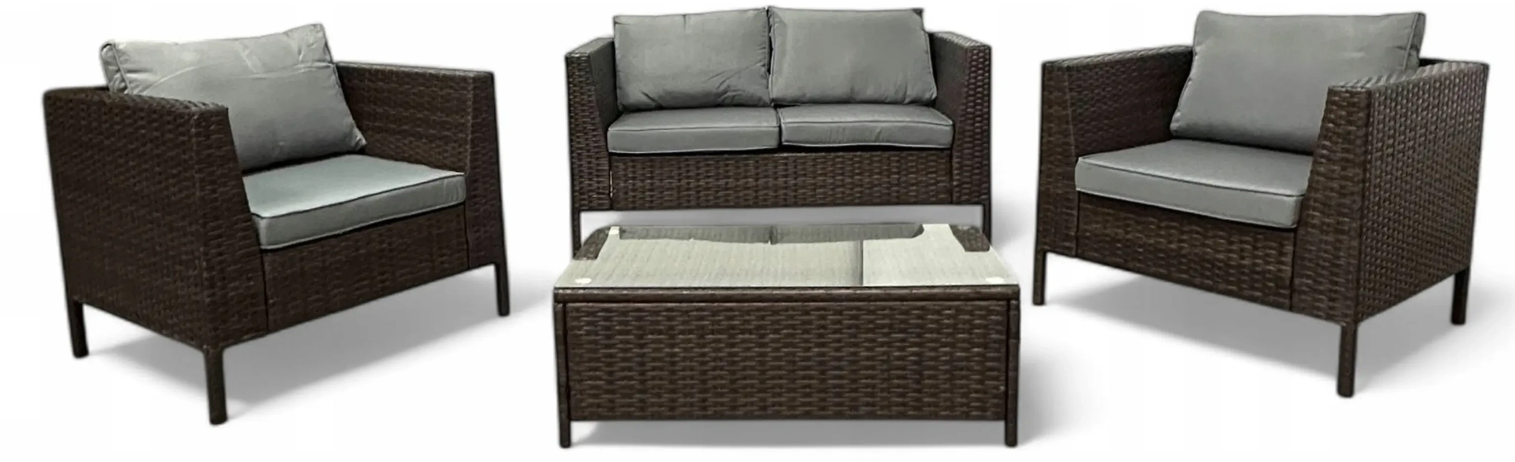 - Skład zestawu: 2 x fotele, 1 x sofa, 1 x stolik, poduszki