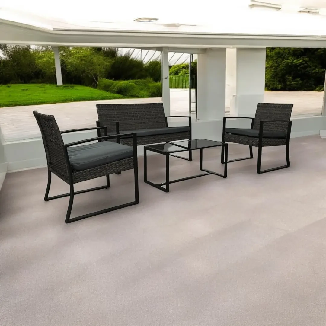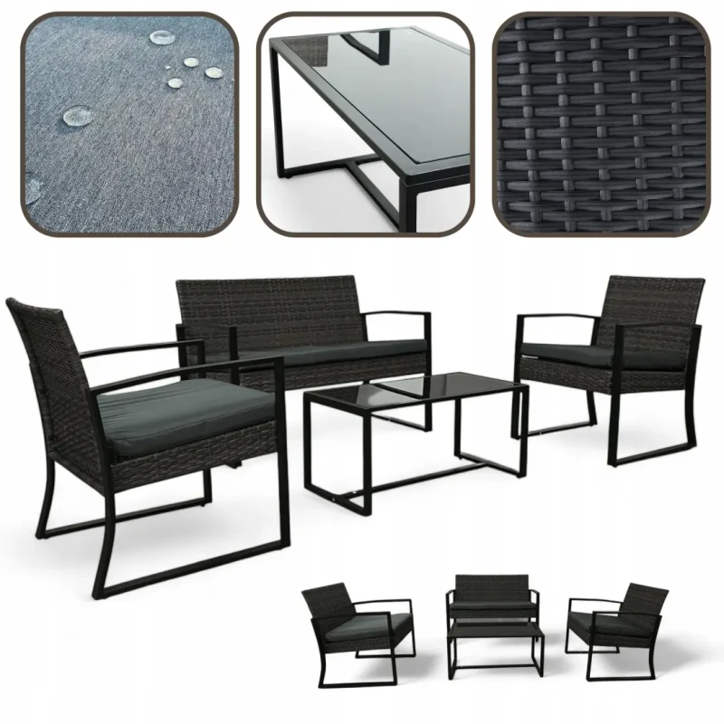 W skład zestawu wchodzi przestronna sofa, dwa wygodne fotele oraz elegancki stolik z solidnym blatem z czarnego szkła hartowanego. Całość dopełniają miękkie, wodoodporne poduszki, które nie tylko poprawiają komfort siedzenia, ale również są odporne na wilgoć i łatwe w utrzymaniu czystości. Zestaw Palma to idealne rozwiązanie dla osób, które cenią sobie styl, wygodę i trwałość. Stwórz wymarzoną przestrzeń do wypoczynku, w której każdy moment stanie się wyjątkowy.