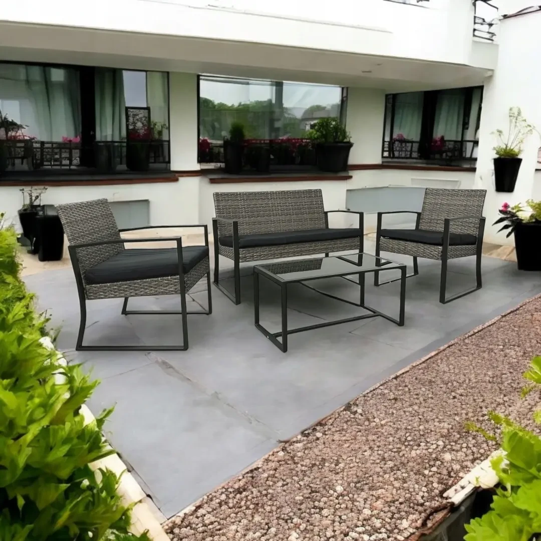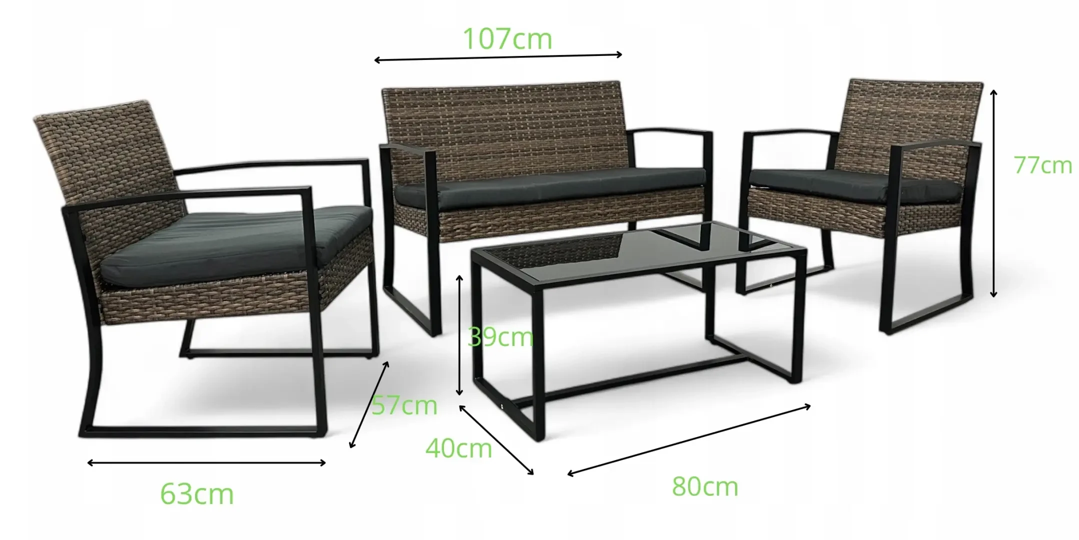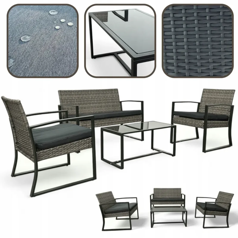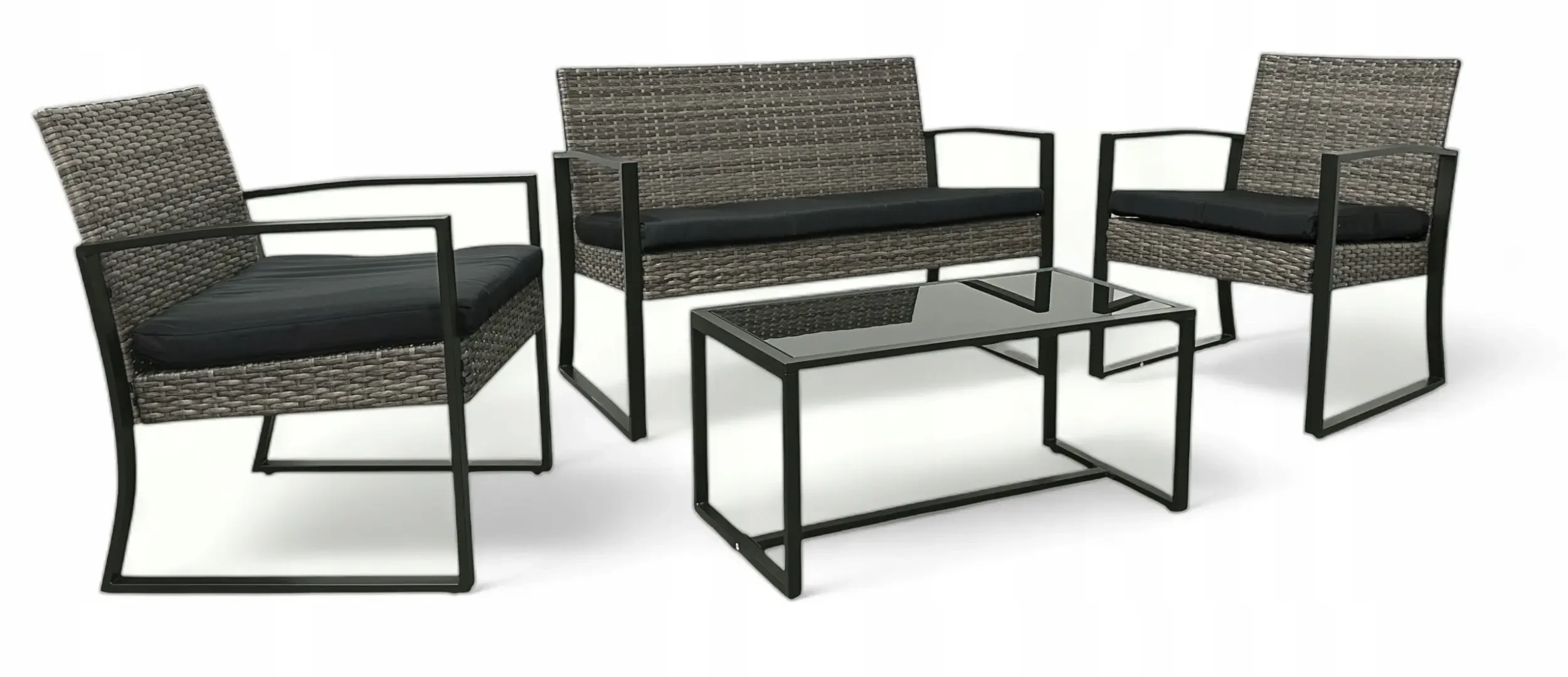 W skład zestawu wchodzi przestronna sofa, dwa wygodne fotele oraz elegancki stolik z solidnym blatem z czarnego szkła hartowanego. Całość dopełniają miękkie, wodoodporne poduszki, które nie tylko poprawiają komfort siedzenia, ale również są odporne na wilgoć i łatwe w utrzymaniu czystości. Zestaw Palma to idealne rozwiązanie dla osób, które cenią sobie styl, wygodę i trwałość. Stwórz wymarzoną przestrzeń do wypoczynku, w której każdy moment stanie się wyjątkowy.