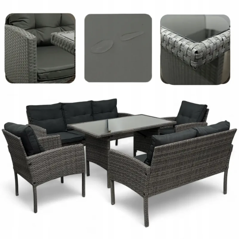 Zestaw mebli ogrodowych z technorattanu Puertorico Szary