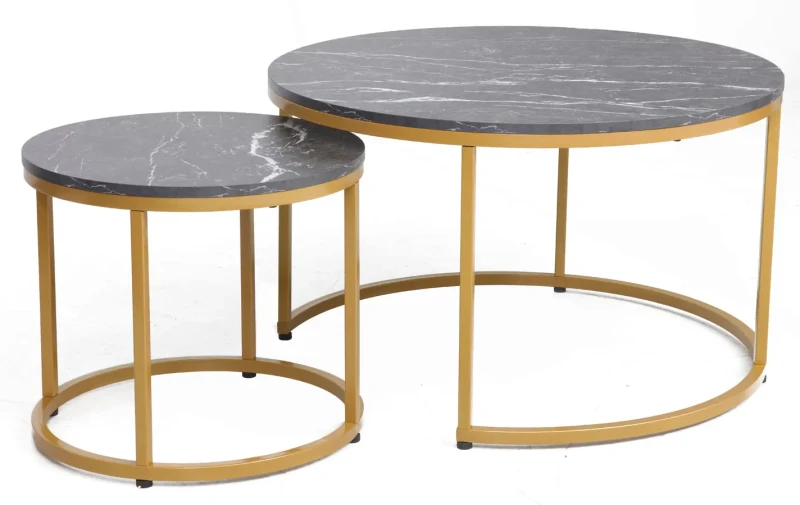 Zestaw stolików Dion czarny efekt marmuru/złoty