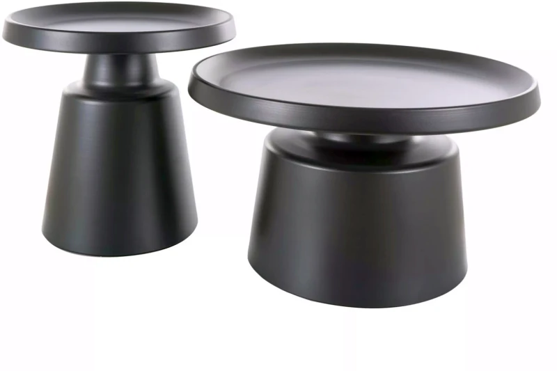 Zestaw dwóch stolików RODOS to doskonałe połączenie surowej elegancji, nowoczesnego designu i funkcjonalności, które sprawdzi się w każdym stylowym wnętrzu. Dzięki różnym rozmiarom blatu (Ø50 i Ø70 cm), zestaw można ustawiać w dowolnej konfiguracji, dostosowując go do przestrzeni i potrzeb domowników. Okrągłe kształty i jednolita kolorystyka w głębokim, czarnym macie nadają całości wyjątkowego, minimalistycznego charakteru. Stolik sprawdzi się zarówno jako praktyczny mebel pomocniczy w salonie, jak i stylowy element dekoracyjny w sypialni czy przedpokoju. Solidna metalowa konstrukcja zapewnia stabilność i trwałość, a matowe wykończenie dodaje klasy i łatwości w utrzymaniu czystości.