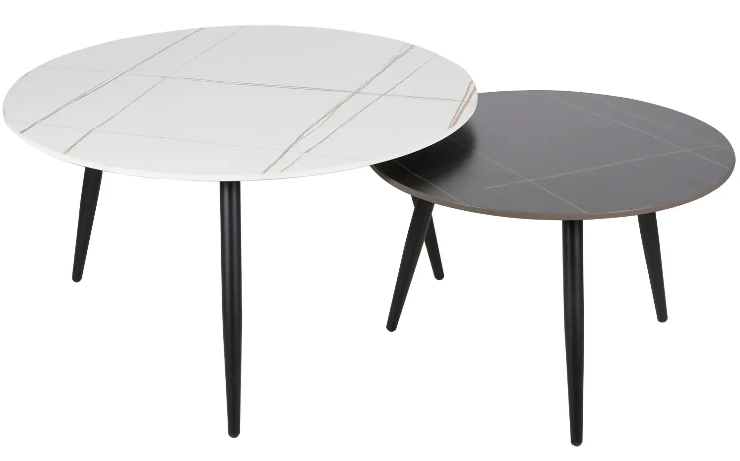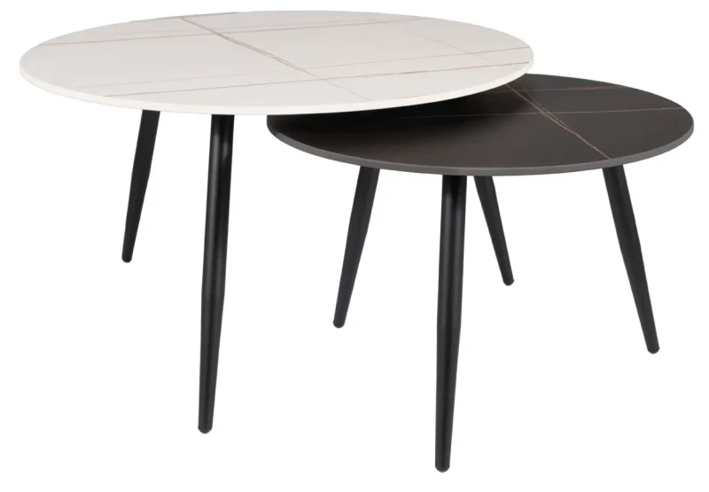 Zestaw stolików Kora B biały/czarny efekt marmuru