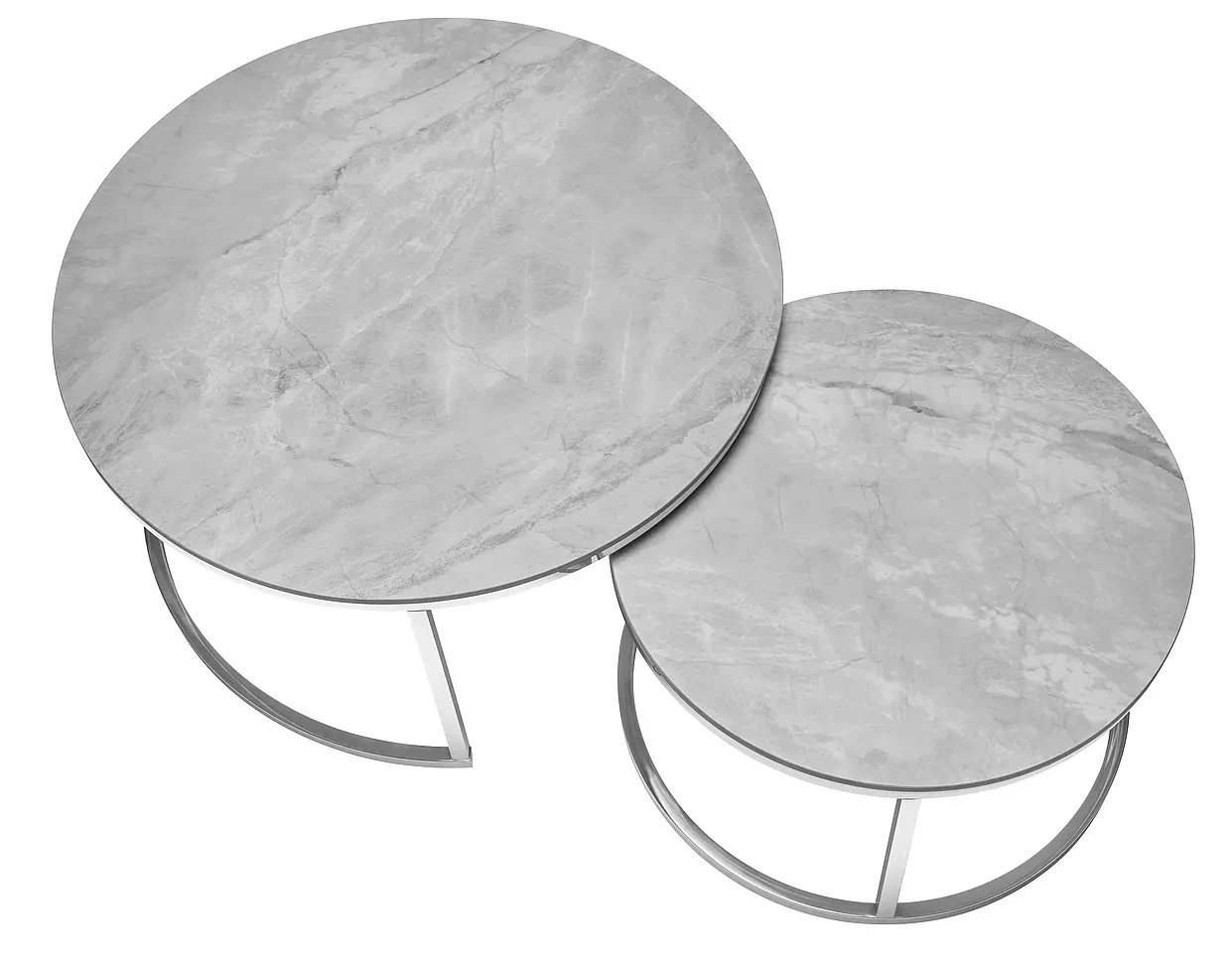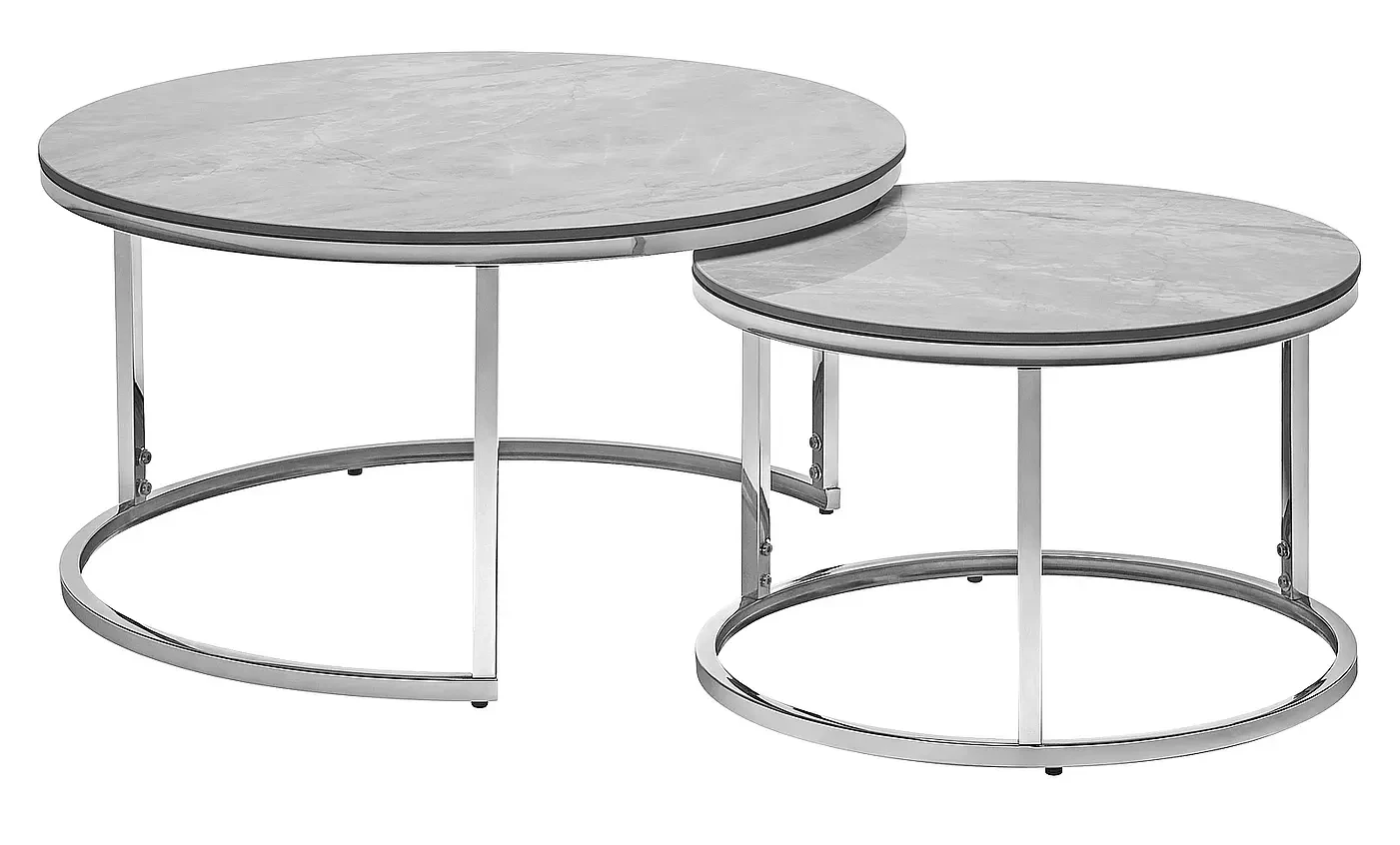 Zestaw stolików Portafino B szary efekt marmuru/chrom