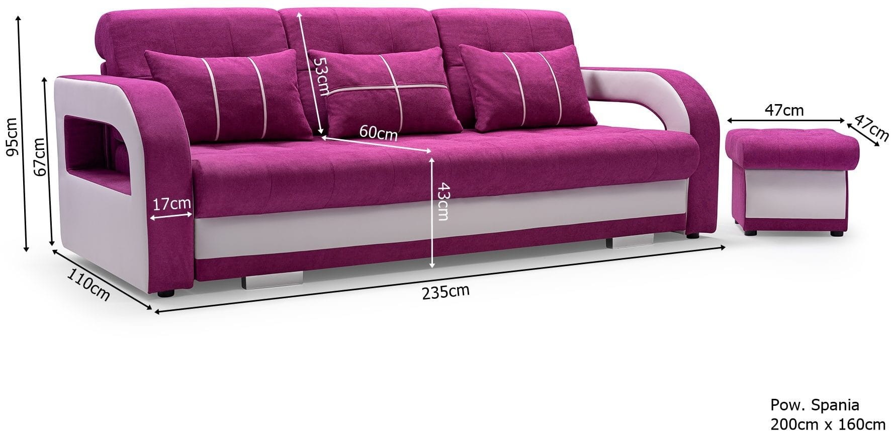 - funkcja spania sofy - duża powierzchnia spania pozwoli na komfortowy wypoczynek