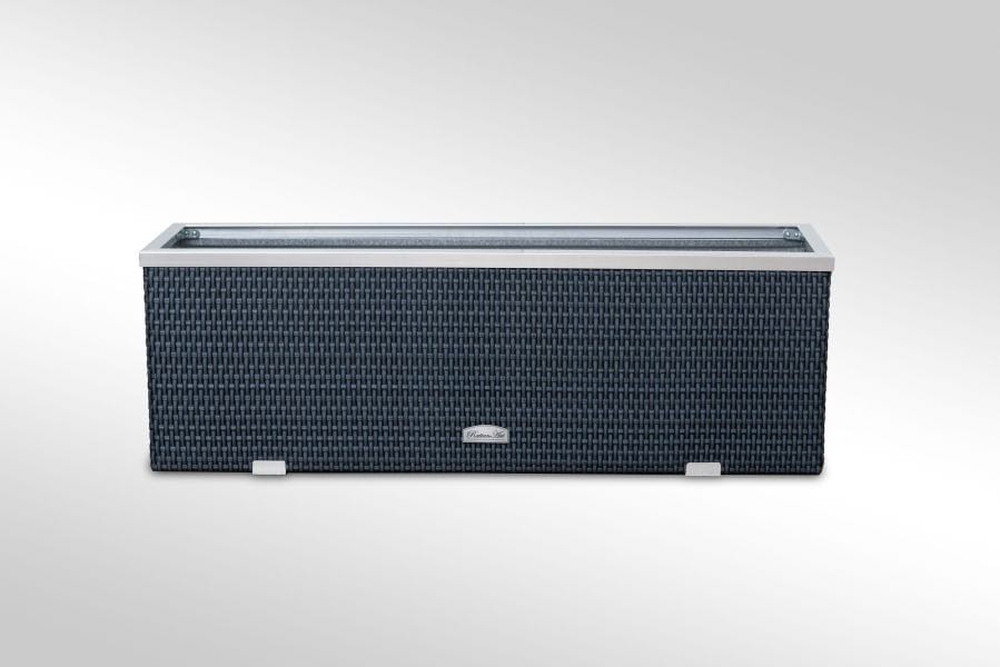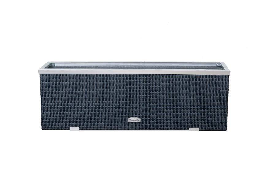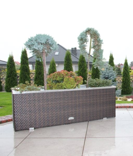 Donica została wykonana z wysokiej jakości plecionego technorattanu. Góra wykończona z aluminium polerowanego, natomiast boki zostały wzbogacone o dwie ozdobne listwy. Wnętrze donicy technorattanowej wykończone zostało blachą ocynkowaną co umożliwia bezpośrednie wypełnienie podłożem pod rośliny, na dnie donicy są otwory które pozwolą na swobodny odpływ wody.