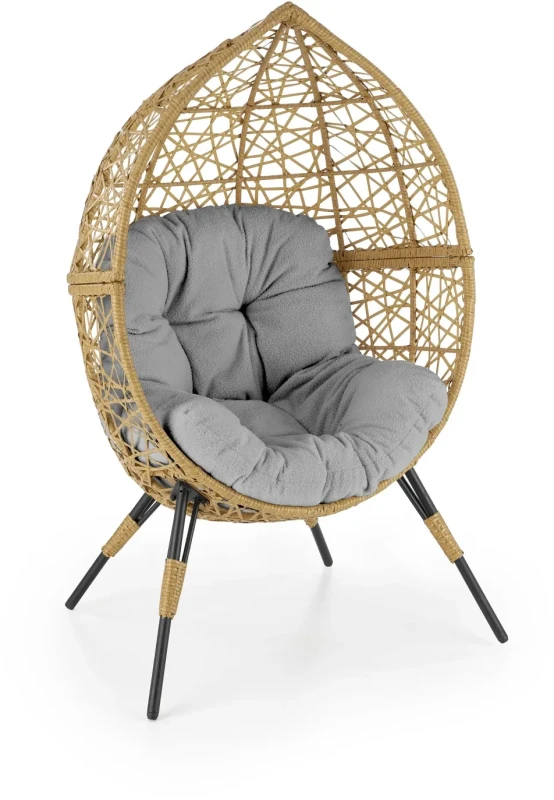 Fotel ogrodowy Oskar rattanowy kokon z poduszkĄ na taras naturalny/jasny popiel