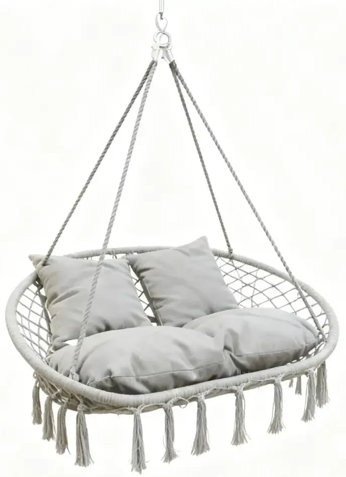 Fotel wiszący bocianie gniazdo HC2502-LG to wygodne miejsce do relaksu dla dwóch osób. Sprawdzi się w ogrodzie, na tarasie, balkonie, a także we wnętrzach takich jak salon, sypialnia czy pokój dziecięcy. Duże siedzisko, miękkie poduszki i stabilna konstrukcja zapewniają komfort codziennego użytkowania.