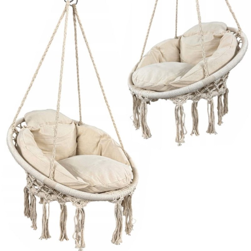 Fotel wiszący bocianie gniazdo huśtawka z miękką poduszką do domu i ogrodu beżowy