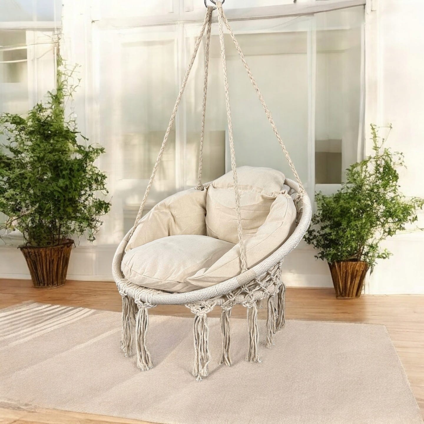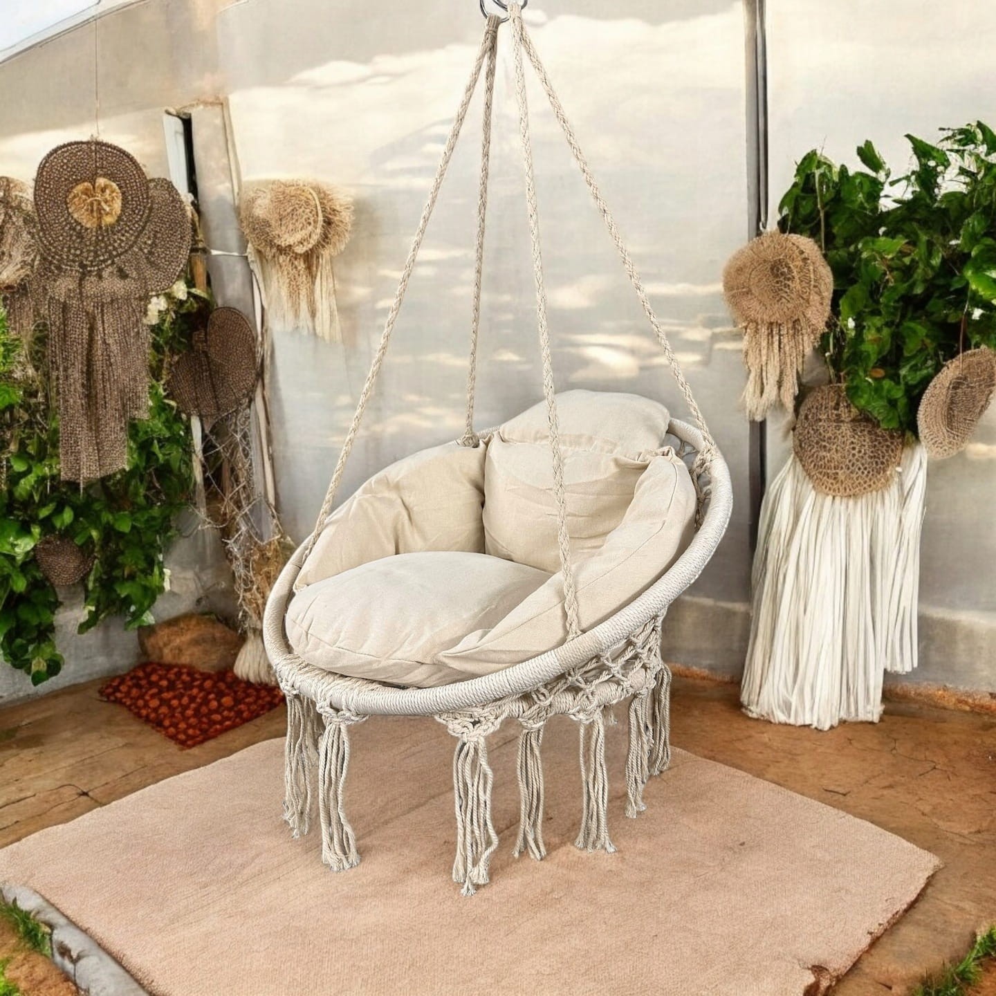 Odpoczywaj tak, jak lubisz – wygodnie i stylowo! Zanurz się w błogim wypoczynku, unosząc się w powietrzu! Fotel Bocianie Gniazdo to idealne miejsce na chwilę relaksu – zarówno w ogrodzie, na balkonie, jak i w domu. Miękkie poduszki i wygodne siedzisko zapewniają komfort na najwyższym poziomie, a wytrzymała konstrukcja gwarantuje stabilność i bezpieczeństwo aż do 150 kg.