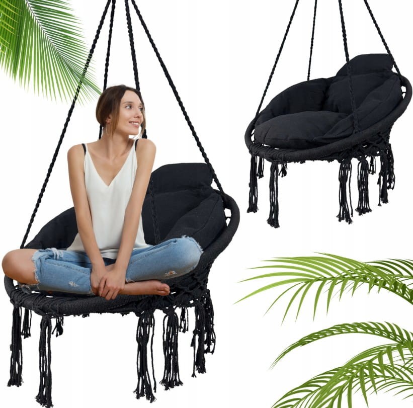 Fotel wiszący bocianie gniazdo huśtawka z miękką poduszką do domu i ogrodu czarny