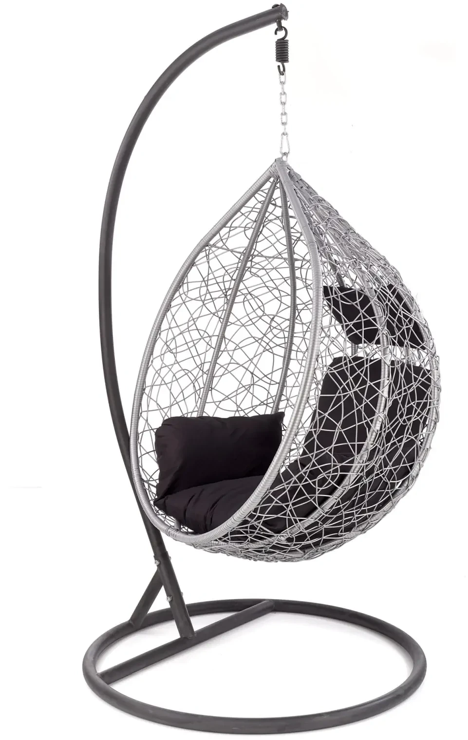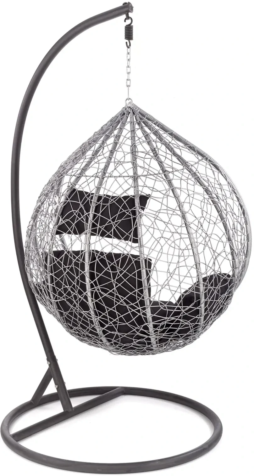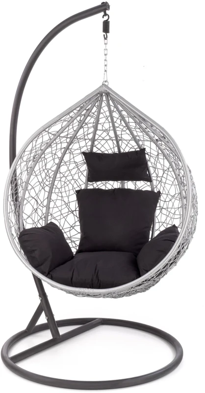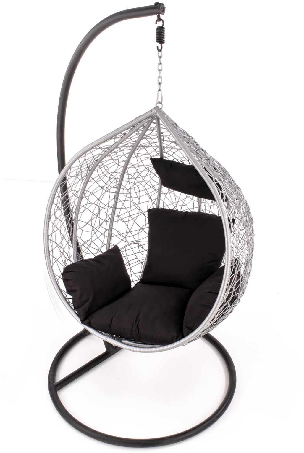 Fotel wiszący Eggy kokon ogrodowy z poduszkami na taras popielaty/czarny