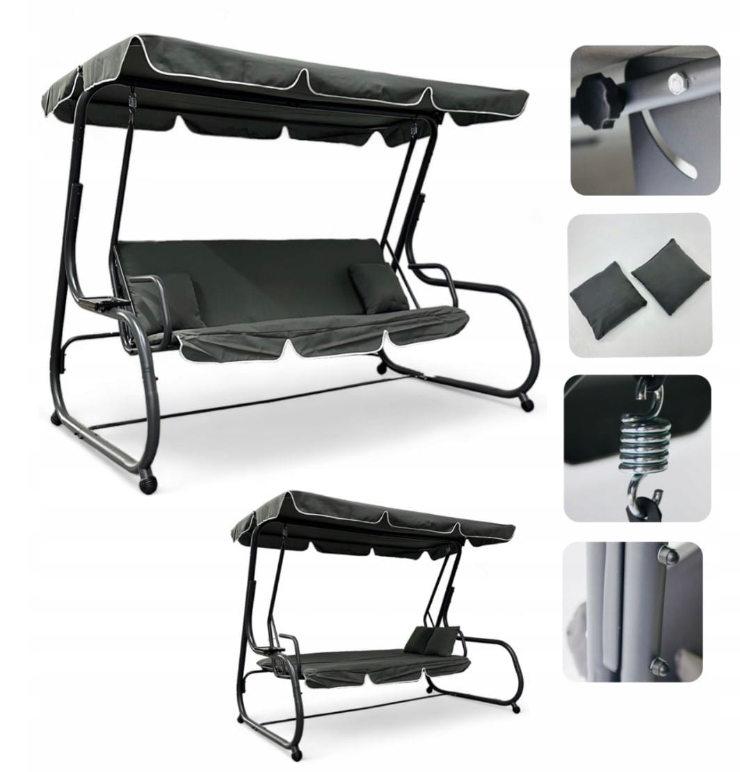Huśtawka ogrodowa rozkładana Korda XXL duża Szary
