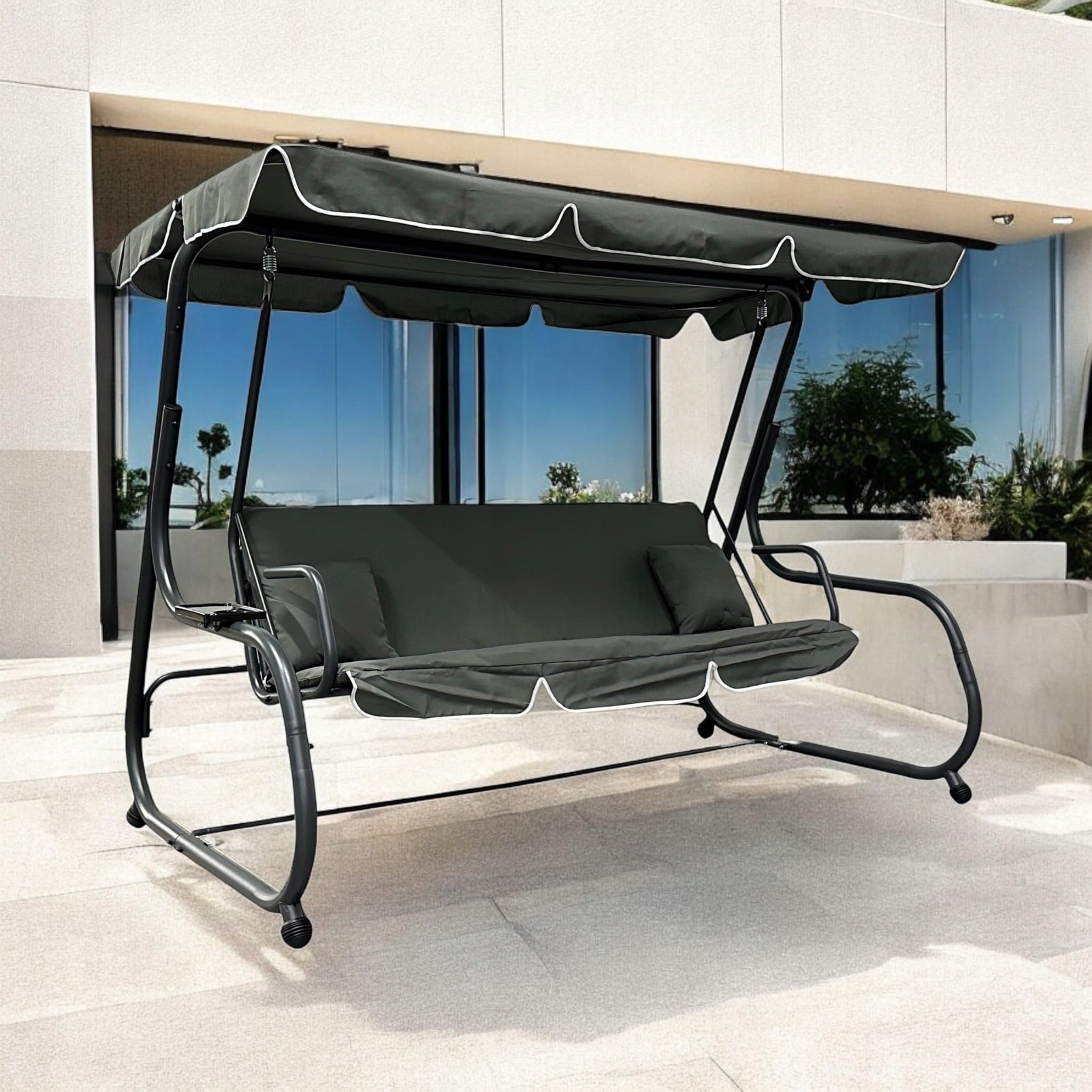 - W zestawie huśtawka i 2 poduszki oraz 1x podstawka pod napój przymocowana do huśtawki