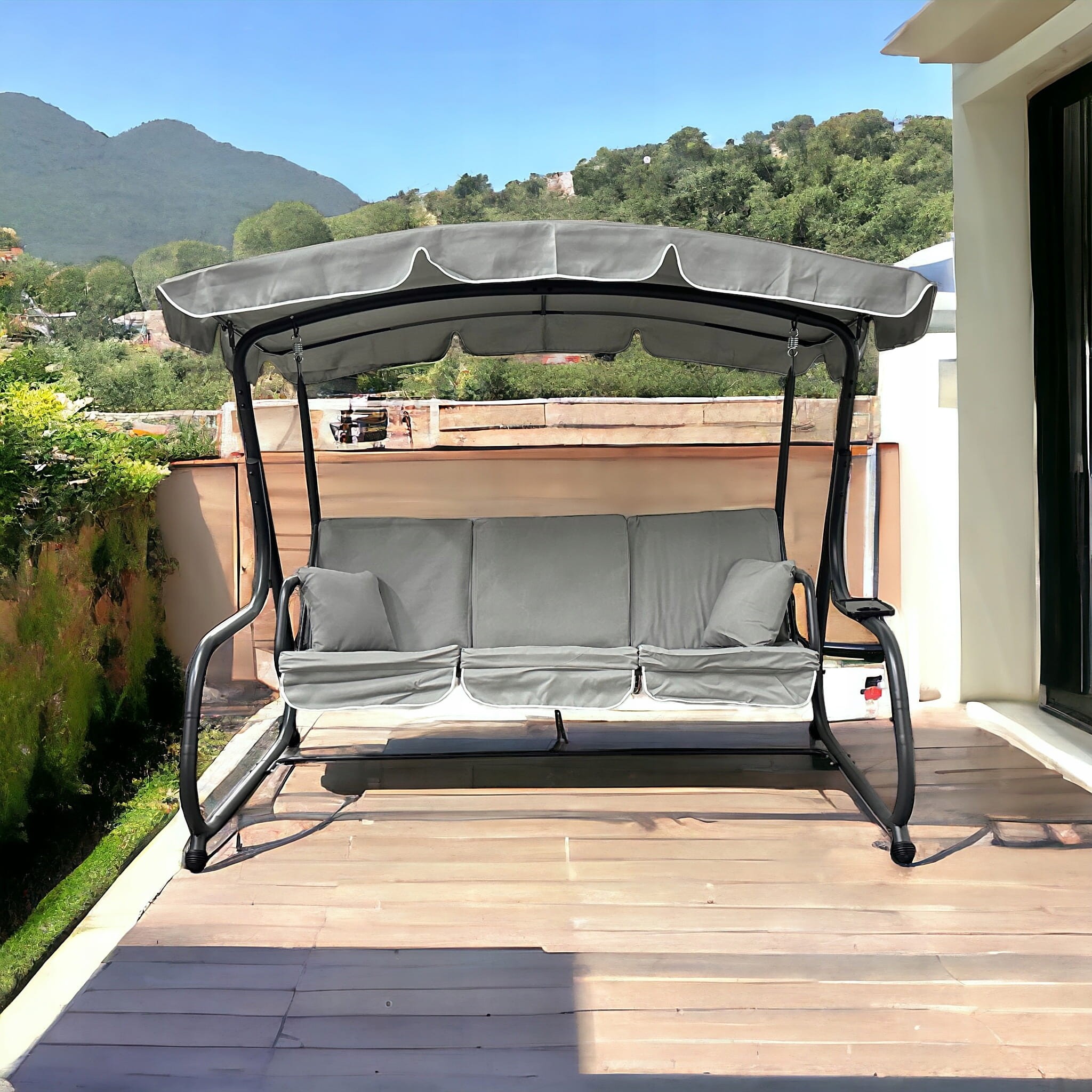 - W zestawie huśtawka i 2 poduszki oraz 1x podstawka pod napój przymocowana do huśtawki