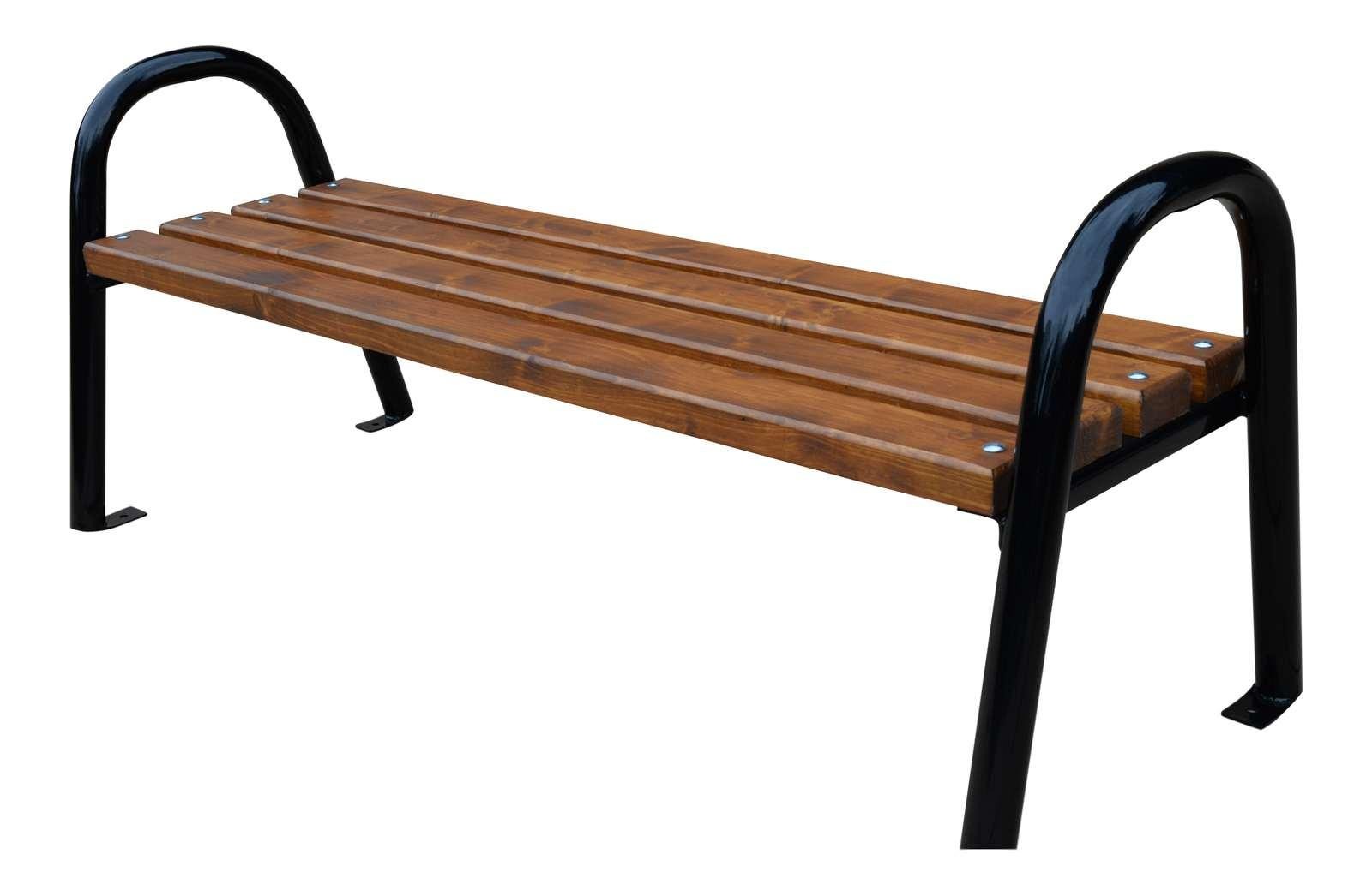 Ławka stalowa idealnie sprawdzi się w przydomowym ogrodzie, jak również w przestrzeni publicznej czy ogródku restauracyjnym. Dzięki stabilnej konstrukcji nie zawiedzie przez wiele lat. Nogi wykonane ze stalowych rur o wymiarach 50x2. Stelaże zostały pomalowane proszkowo na kolor czarny, co skutecznie zabezpiecza przed korozją. Deski wykonane z drewna iglastego (świerk), pomalowane impregnatem zabezpieczającym deskę przed grzybem i robakiem. Dodatkowo dwukrotnie pomalowane lakierem na kolor bursztynowo-złoty. Możliwość przykręcenia do podłoża.