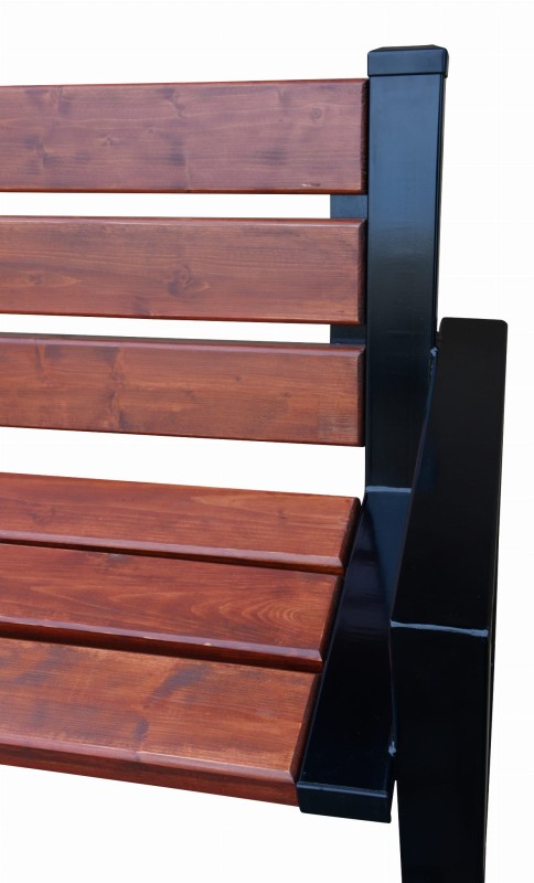 Ławka stalowa idealnie sprawdzi się w przydomowym ogrodzie, jak również w przestrzeni publicznej czy ogródku restauracyjnym. Dzięki stabilnej konstrukcji sprawdzi się w każdych warunkach i nie zawiedzie przez wiele lat. Nogi wykonane ze stalowych profili o wymiarach 80x40x2. Stelaże zostały pomalowane proszkowo na kolor czarny, co skutecznie zabezpiecza przed korozją. Deski wykonane z drewna iglastego (świerk), pomalowane impregnatem zabezpieczającym deskę przed grzybem i robakiem. Dodatkowo dwukrotnie pomalowane lakierem na kolor bursztynowo-złoty. Możliwość przykręcenia do podłoża.