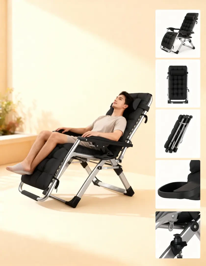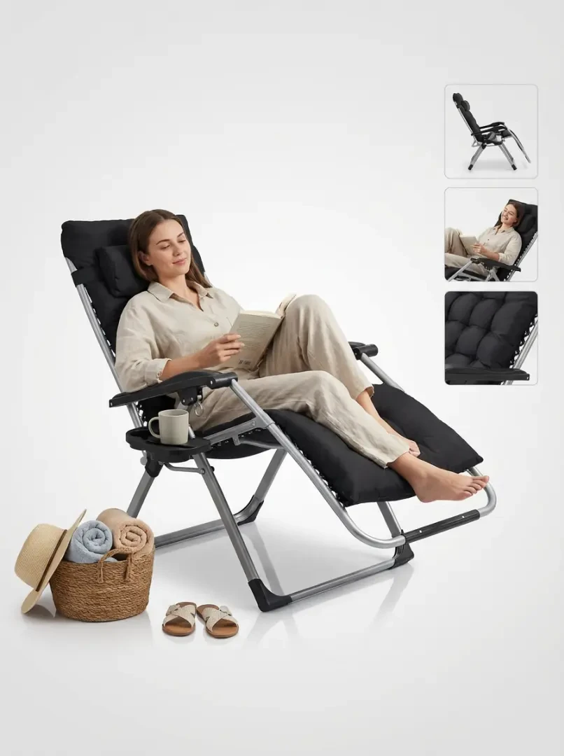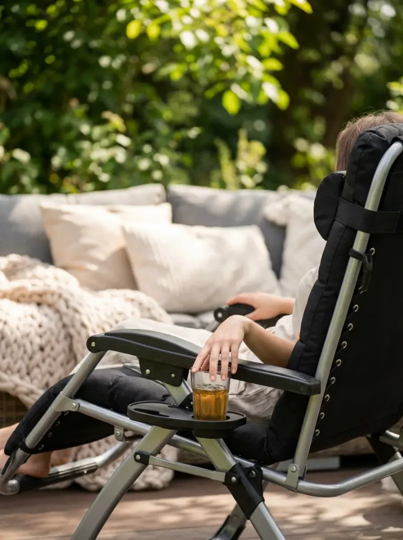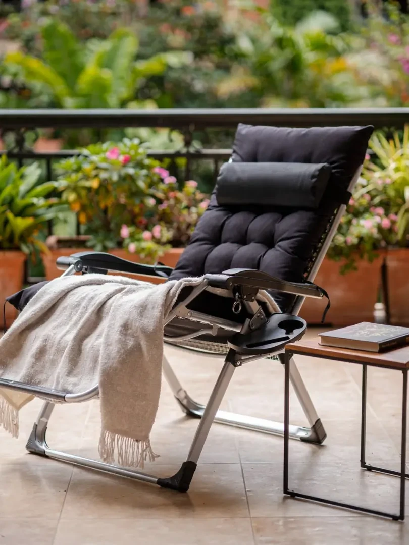 Leżak ogrodowy TDC01-BK to praktyczny model do relaksu w ogrodzie, na tarasie, balkonie, plaży lub podczas wyjazdów. Dzięki rozkładanej konstrukcji łatwo zmienia się z wygodnego krzesła w komfortowy leżak, co pozwala dopasować pozycję do odpoczynku, czytania lub opalania.