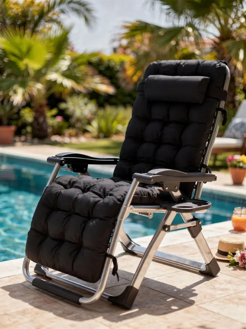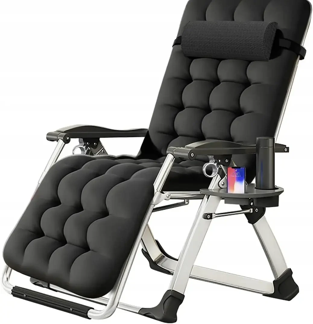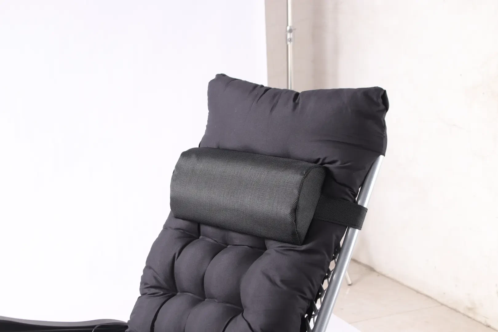 Leżak ogrodowy rozkładany TDC01-BK czarny z poduszką i podgłówkiem