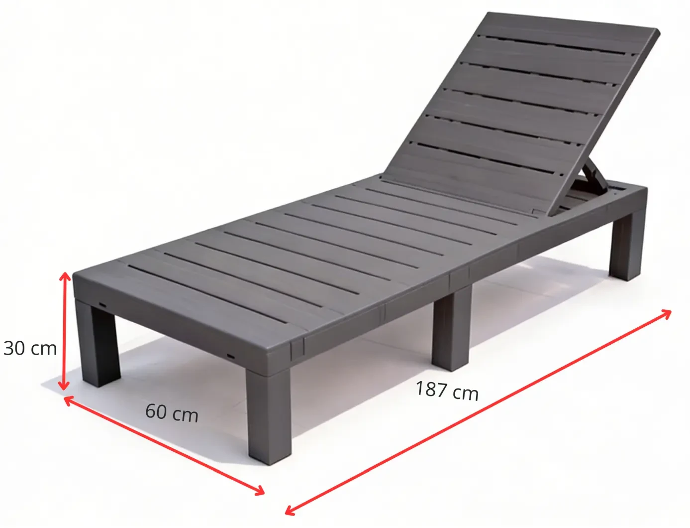 - leżak: 187 x 60 x 30 cm (długość x szerokość x wysokość)